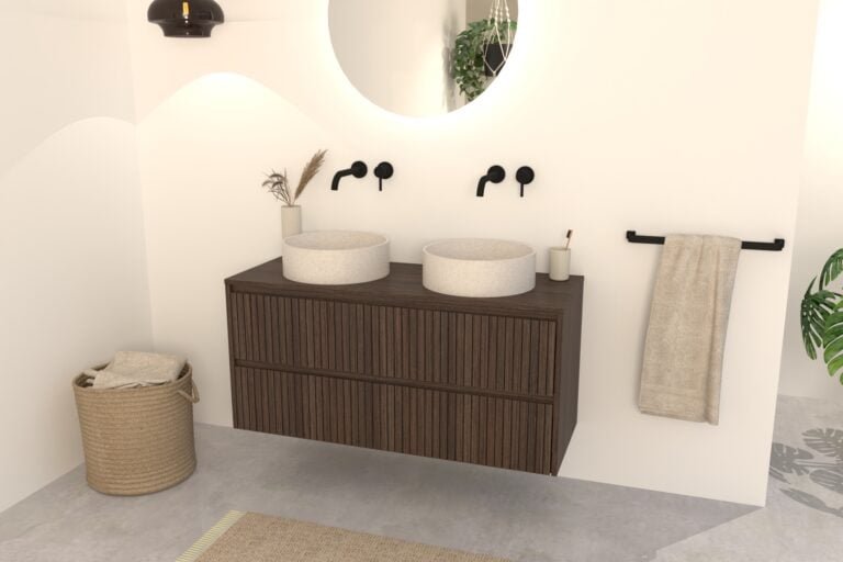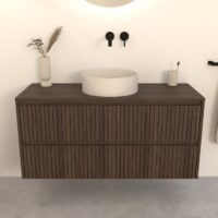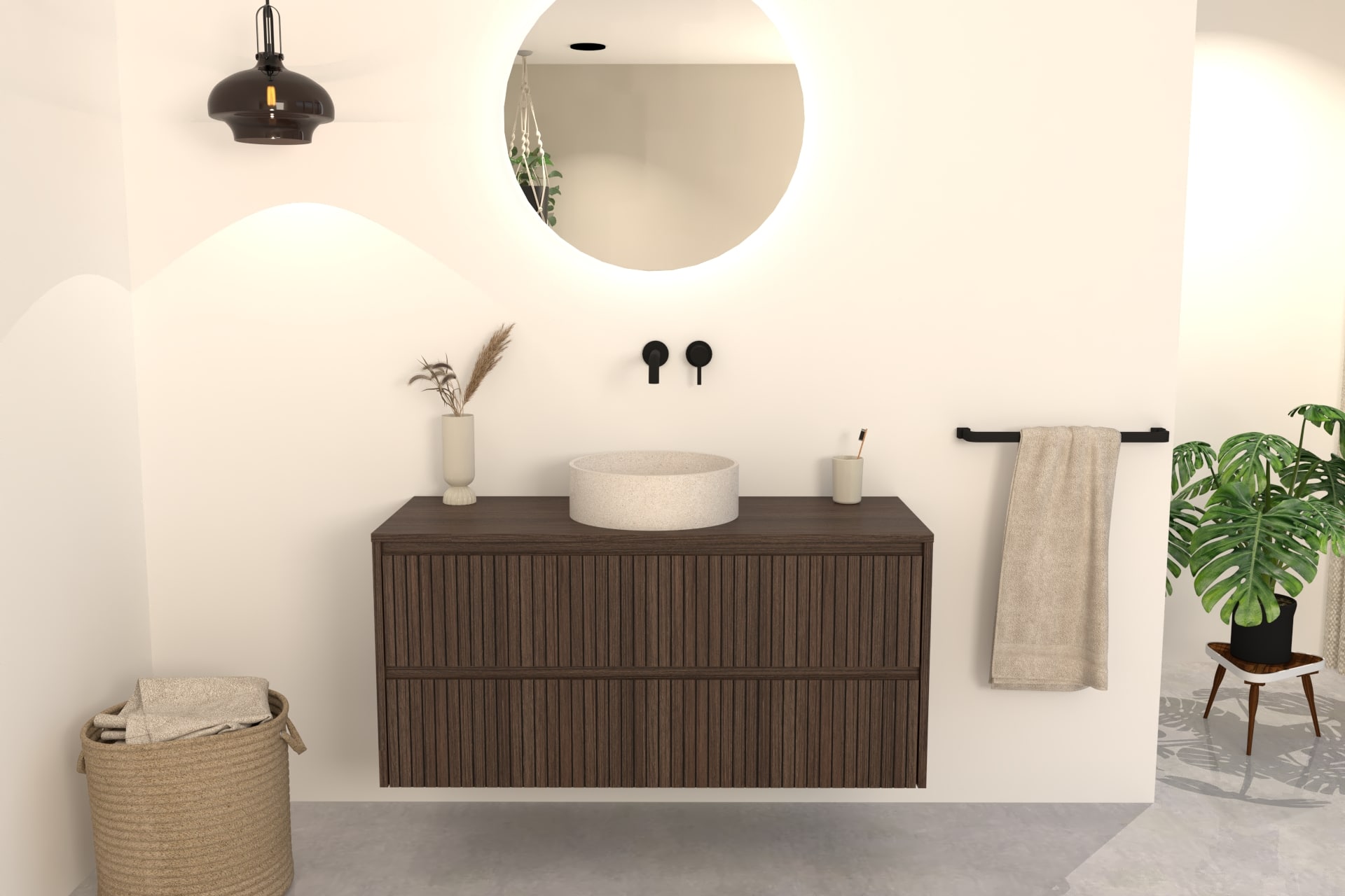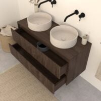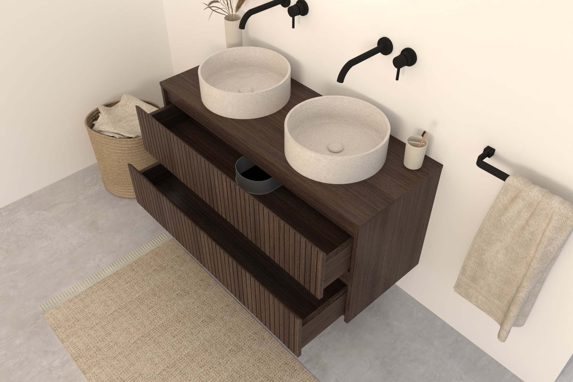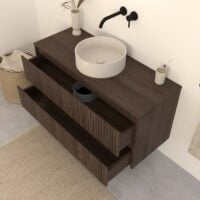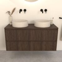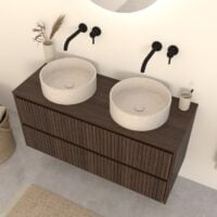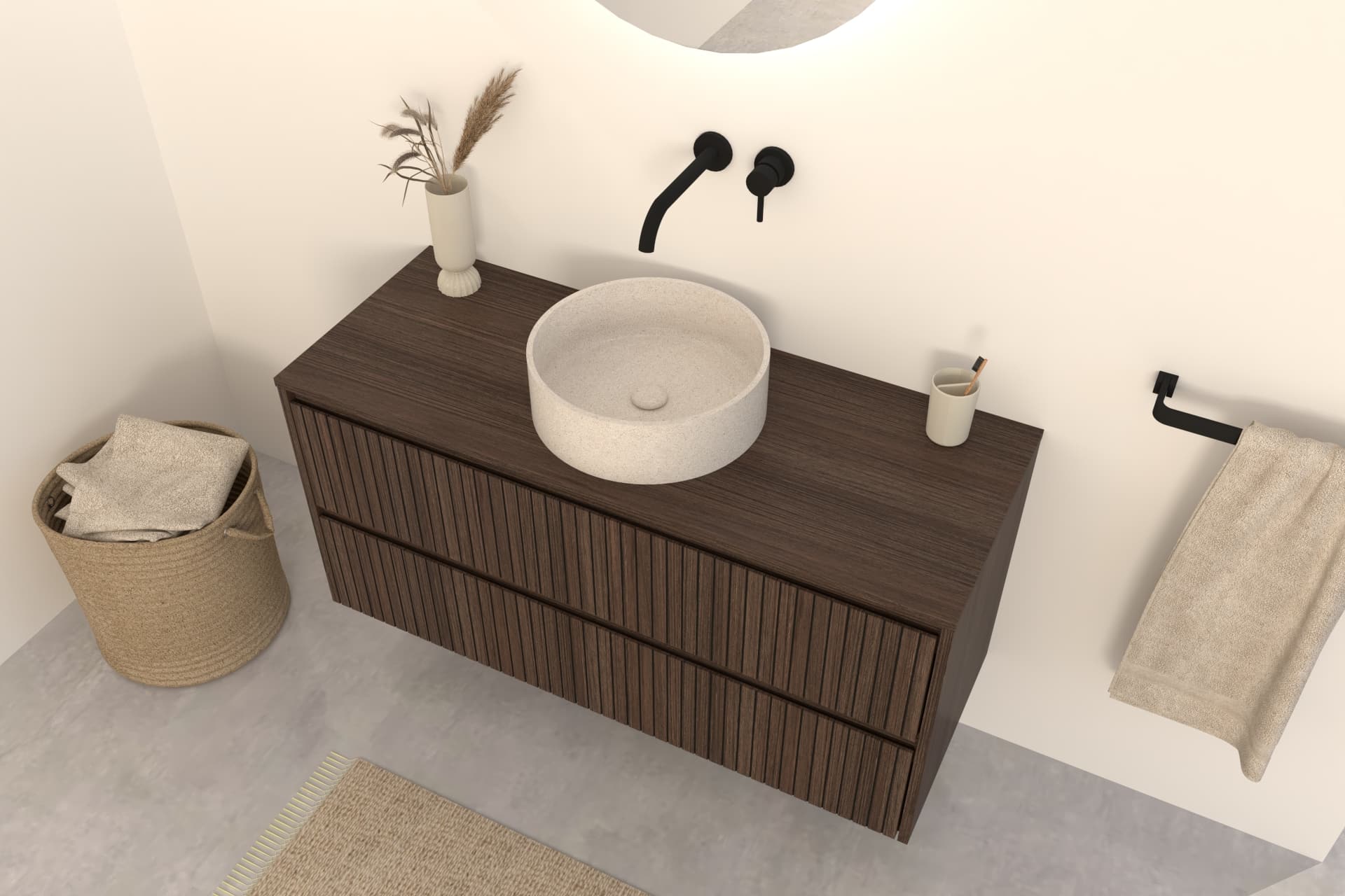 Dunkel Eiche Badmöbel Nila 120 cm – Riffelfront mit 2 Softclose-Schubladen