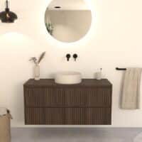 Dunkel Eiche Badmöbel Nila 100 cm – Riffelfront mit Softclose-Schubladen