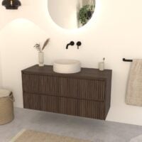 Dunkel Eiche Badmöbel Nila 100 cm – Riffelfront mit Softclose-Schubladen  659,50