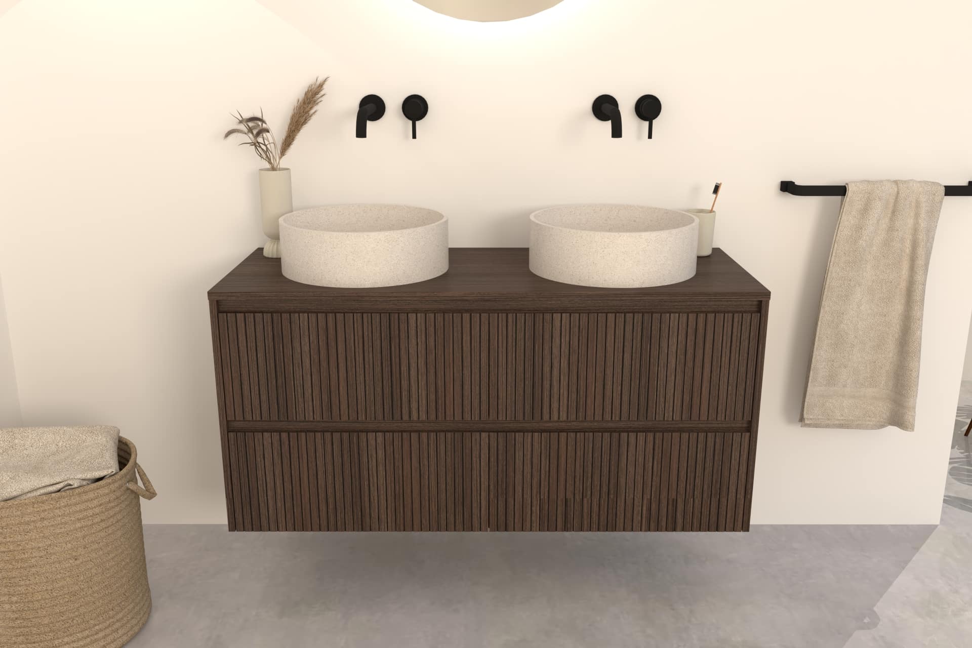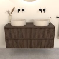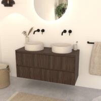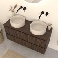 Dunkel Eiche Badmöbel Nila 120 cm – Riffelfront mit 2 Softclose-Schubladen