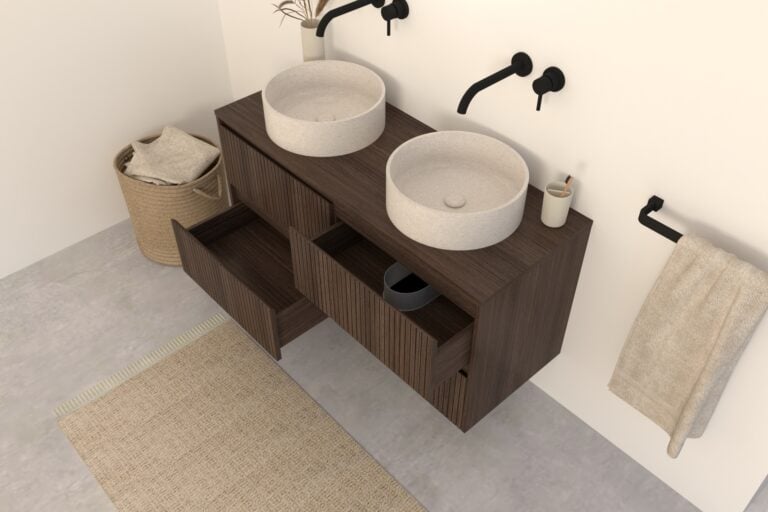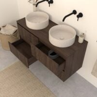 Dunkel Eiche Badmöbel Nila 140 cm – Riffelfront mit 4 Softclose-Schubladen