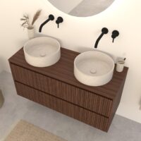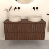 Walnuss-Badmöbel Nila 120 cm – Riffel-Front mit Softclose-Schubladen