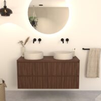 Walnuss-Badmöbel Nila 100 cm – Riffel-Front mit Softclose-Schubladen