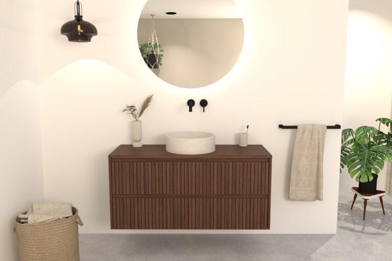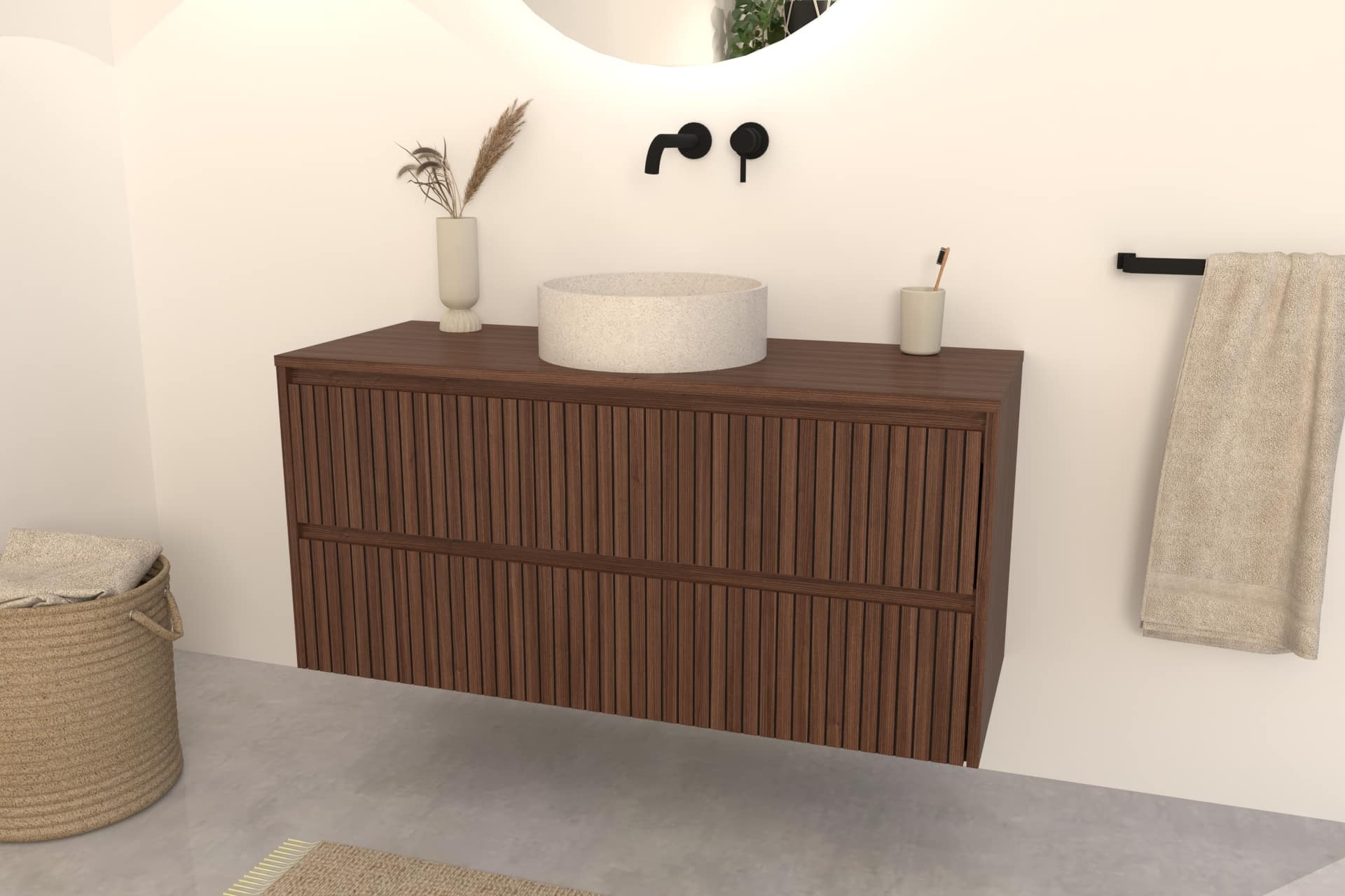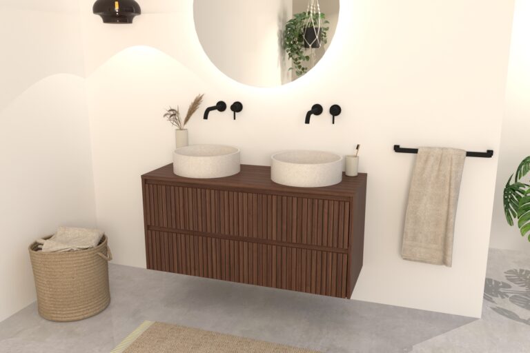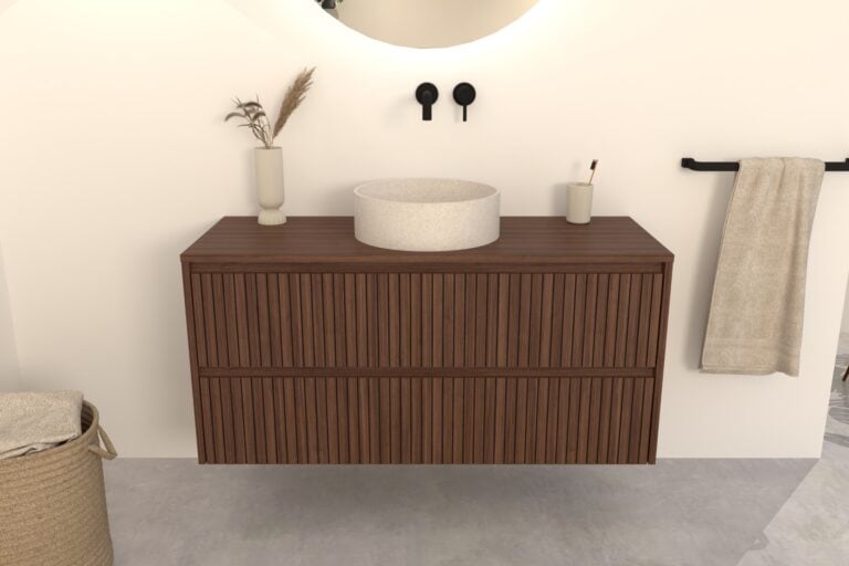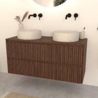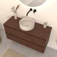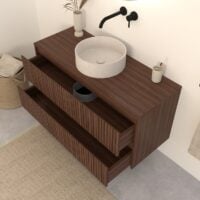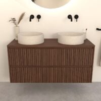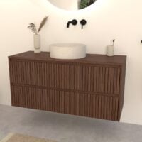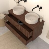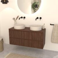 Walnuss-Badmöbel Nila 120 cm – Riffel-Front mit Softclose-Schubladen