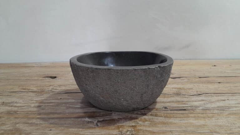 Die kleine Naturstein Waschschale aus Flussstein ist dank ihres kompakten Formats ideal für kleine Räume wie die Toilette oder Gäste-WC. Jede Flussstein-Waschschale wird von Hand aus massivem Naturstein gefertigt. Die Innenseite der Schale ist poliert, während die Außenseite unbehandelt bleibt, wodurch jede Schale stets eine einzigartige, robuste Ausstrahlung erhält.