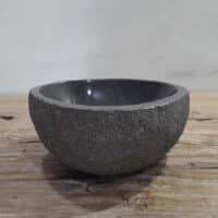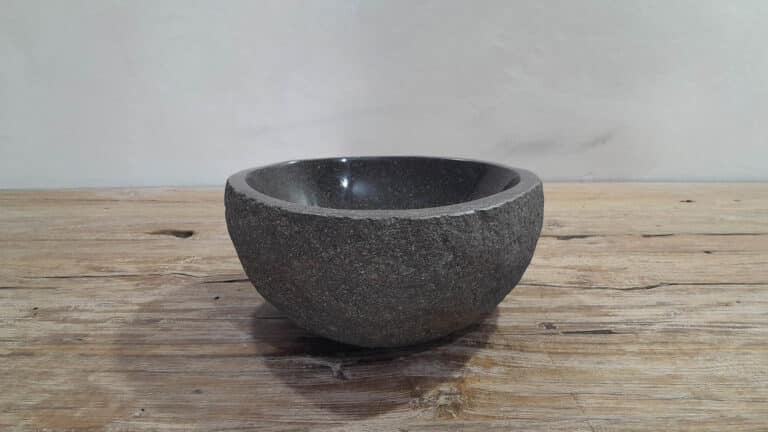 Die kleine Naturstein Waschschale aus Flussstein ist dank ihres kompakten Formats ideal für kleine Räume wie die Toilette oder Gäste-WC. Jede Flussstein-Waschschale wird von Hand aus massivem Naturstein gefertigt. Die Innenseite der Schale ist poliert, während die Außenseite unbehandelt bleibt, wodurch jede Schale stets eine einzigartige, robuste Ausstrahlung erhält.