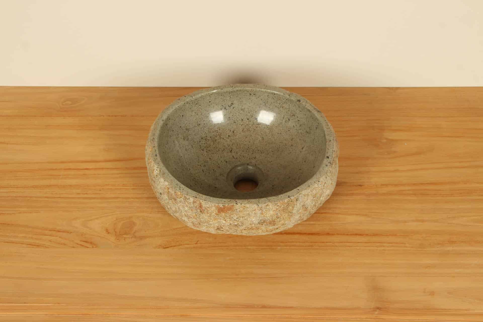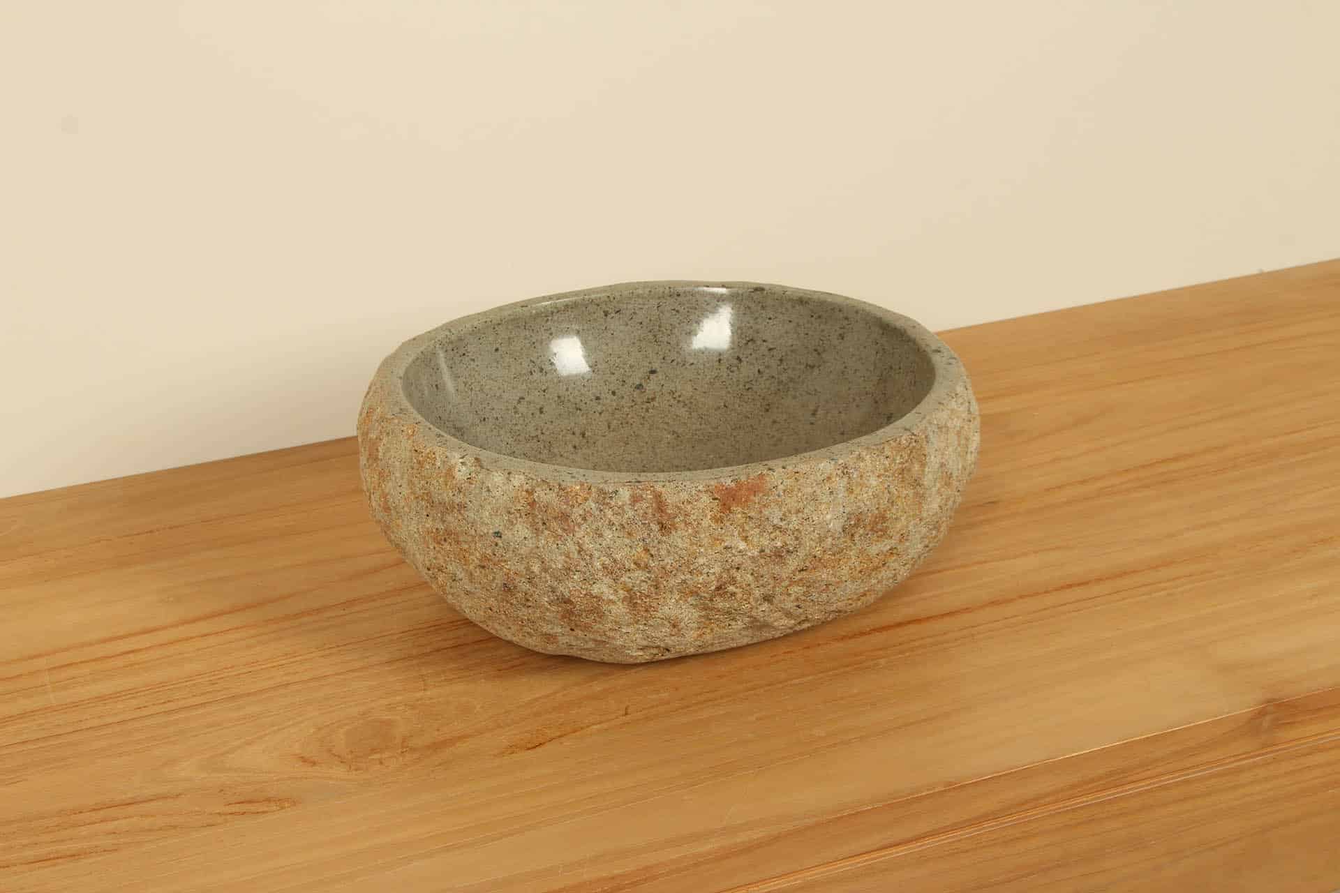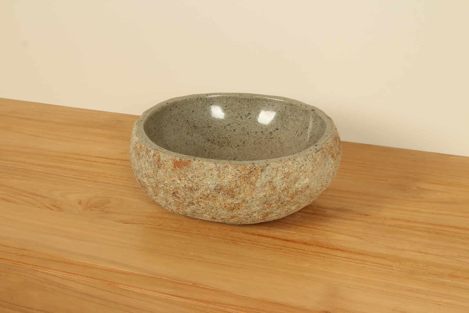 Home / Sortiment / Steinwaschbecken, Aufsatzwaschbecken und Schalen / Flussstein-Waschbecken / Flussstein Waschbecken 20–34 cm /