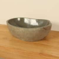 Diese mittelgroße Naturstein Waschschale aus Flussstein ist ideal für kleine bis mittelgroße Badmöbel. Jede Flussstein-Waschschale wird von Hand aus massivem Naturstein gefertigt. Die Innenseite der Schale ist glatt poliert für eine schnelle Wasserableitung und einfache Reinigung, während die Außenseite roh und unbehandelt bleibt, wodurch die Schale ihren robusten und natürlichen Charakter behält.