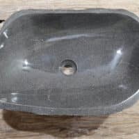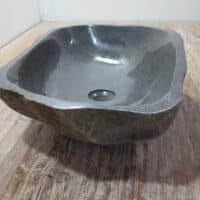 Diese mittelgroße Naturstein Waschschale aus Flussstein ist ideal für kleine bis mittelgroße Badmöbel. Jede Flussstein-Waschschale wird von Hand aus massivem Naturstein gefertigt. Die Innenseite der Schale ist glatt poliert für eine schnelle Wasserableitung und einfache Reinigung, während die Außenseite roh und unbehandelt bleibt, wodurch die Schale ihren robusten und natürlichen Charakter behält.
