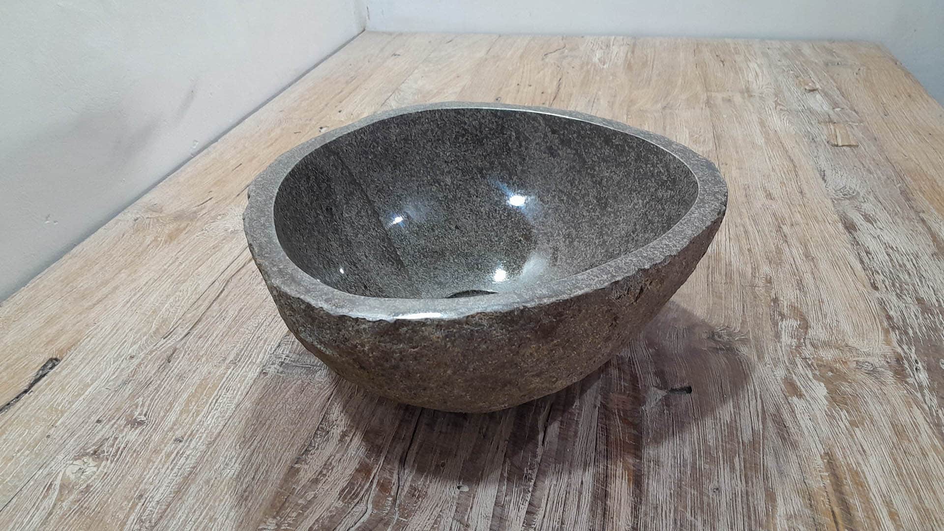 Home / Sortiment / Steinwaschbecken, Aufsatzwaschbecken und Schalen / Flussstein-Waschbecken / Flussstein Waschbecken groß 35 bis 69 cm /