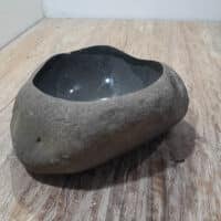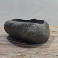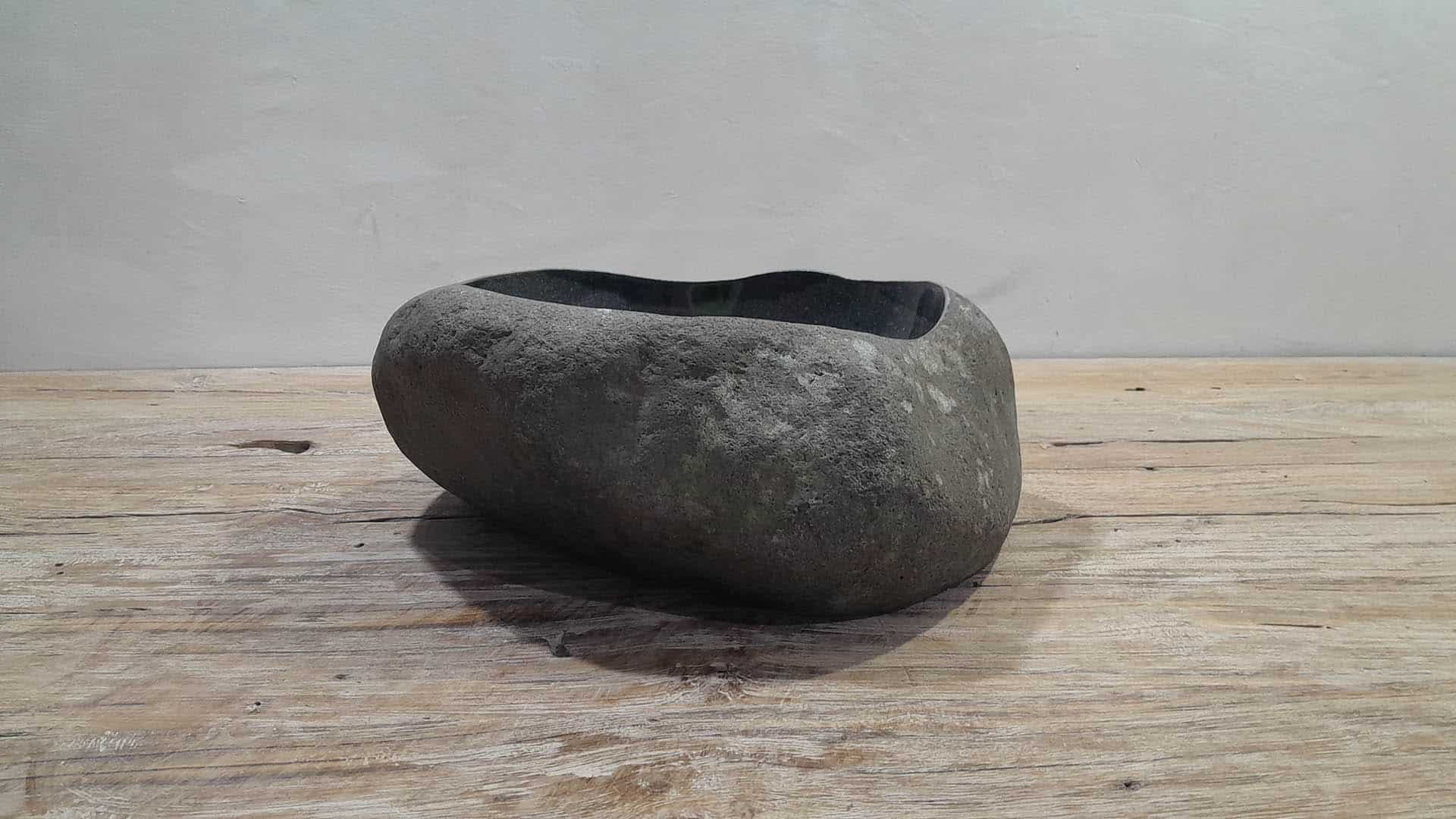 Diese mittelgroße Naturstein Waschschale aus Flussstein ist ideal für kleine bis mittelgroße Badmöbel. Jede Flussstein-Waschschale wird von Hand aus massivem Naturstein gefertigt. Die Innenseite der Schale ist glatt poliert für eine schnelle Wasserableitung und einfache Reinigung, während die Außenseite roh und unbehandelt bleibt, wodurch die Schale ihren robusten und natürlichen Charakter behält.