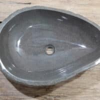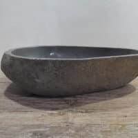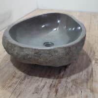 Diese mittelgroße Naturstein Waschschale aus Flussstein ist ideal für kleine bis mittelgroße Badmöbel. Jede Flussstein-Waschschale wird von Hand aus massivem Naturstein gefertigt. Die Innenseite der Schale ist glatt poliert für eine schnelle Wasserableitung und einfache Reinigung, während die Außenseite roh und unbehandelt bleibt, wodurch die Schale ihren robusten und natürlichen Charakter behält.