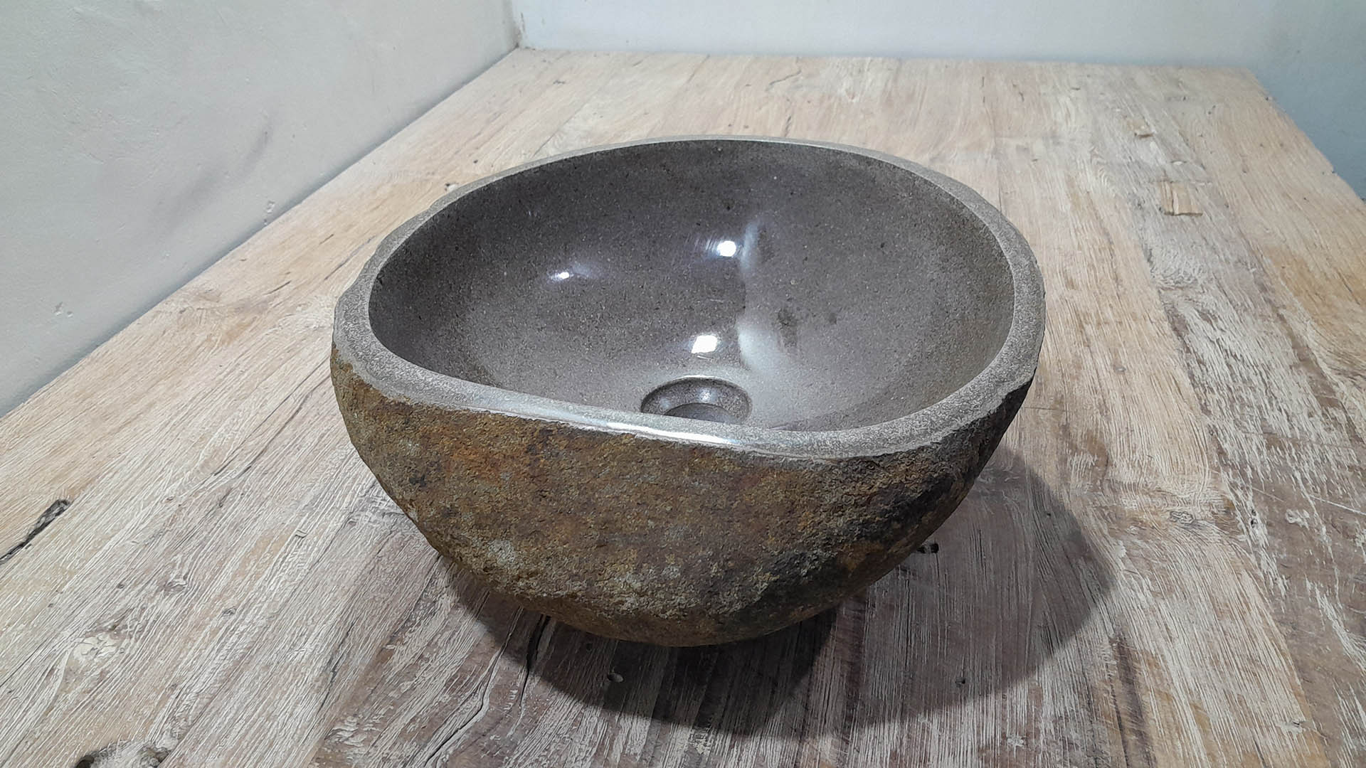 Home / Sortiment / Steinwaschbecken, Aufsatzwaschbecken und Schalen / Flussstein-Waschbecken / Flussstein Waschbecken groß 35 bis 69 cm /