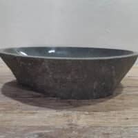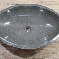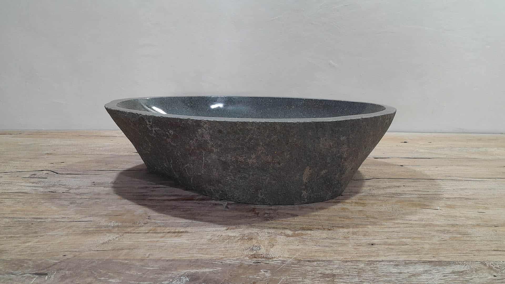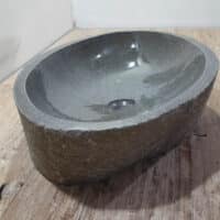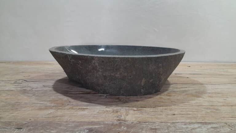 Diese mittelgroße Naturstein Waschschale aus Flussstein ist ideal für kleine bis mittelgroße Badmöbel. Jede Flussstein-Waschschale wird von Hand aus massivem Naturstein gefertigt. Die Innenseite der Schale ist glatt poliert für eine schnelle Wasserableitung und einfache Reinigung, während die Außenseite roh und unbehandelt bleibt, wodurch die Schale ihren robusten und natürlichen Charakter behält.