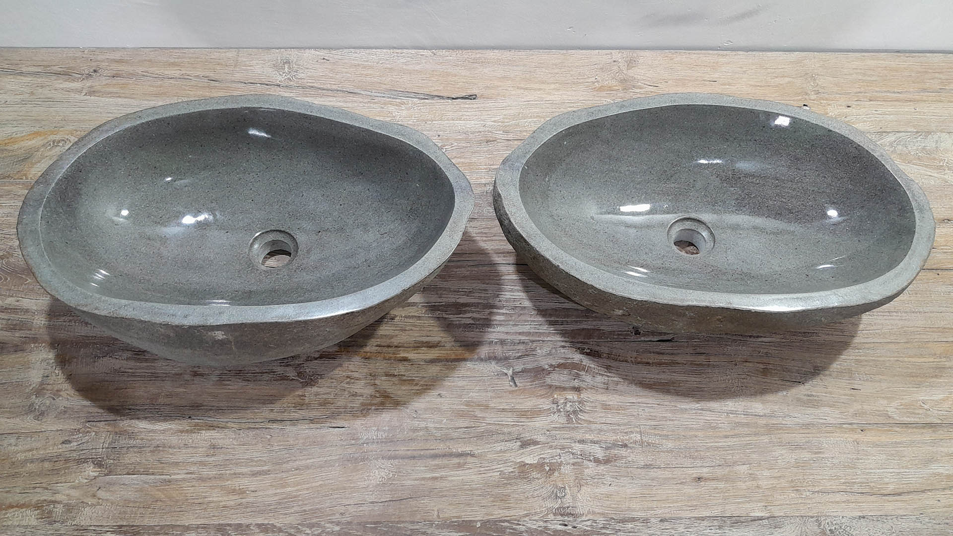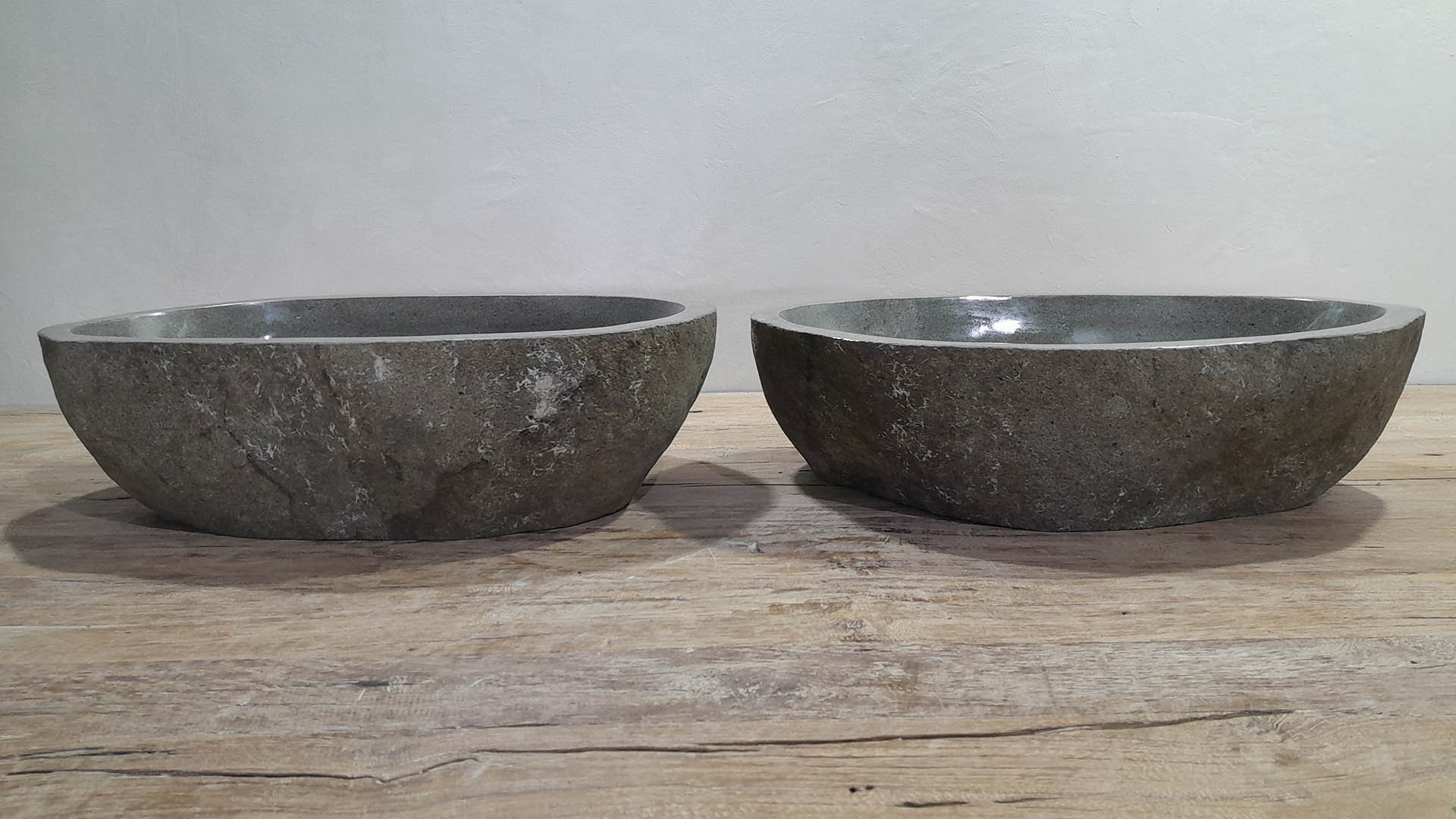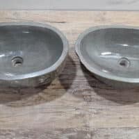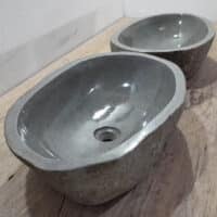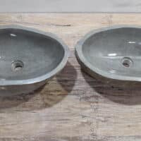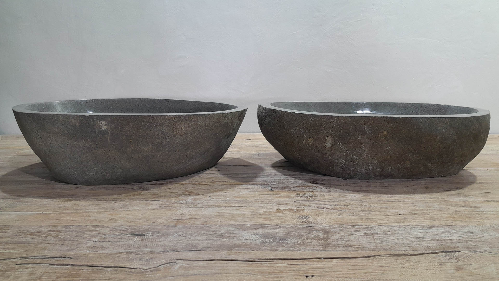 - Zwei handgefertigte Becken aus einem Flussstein