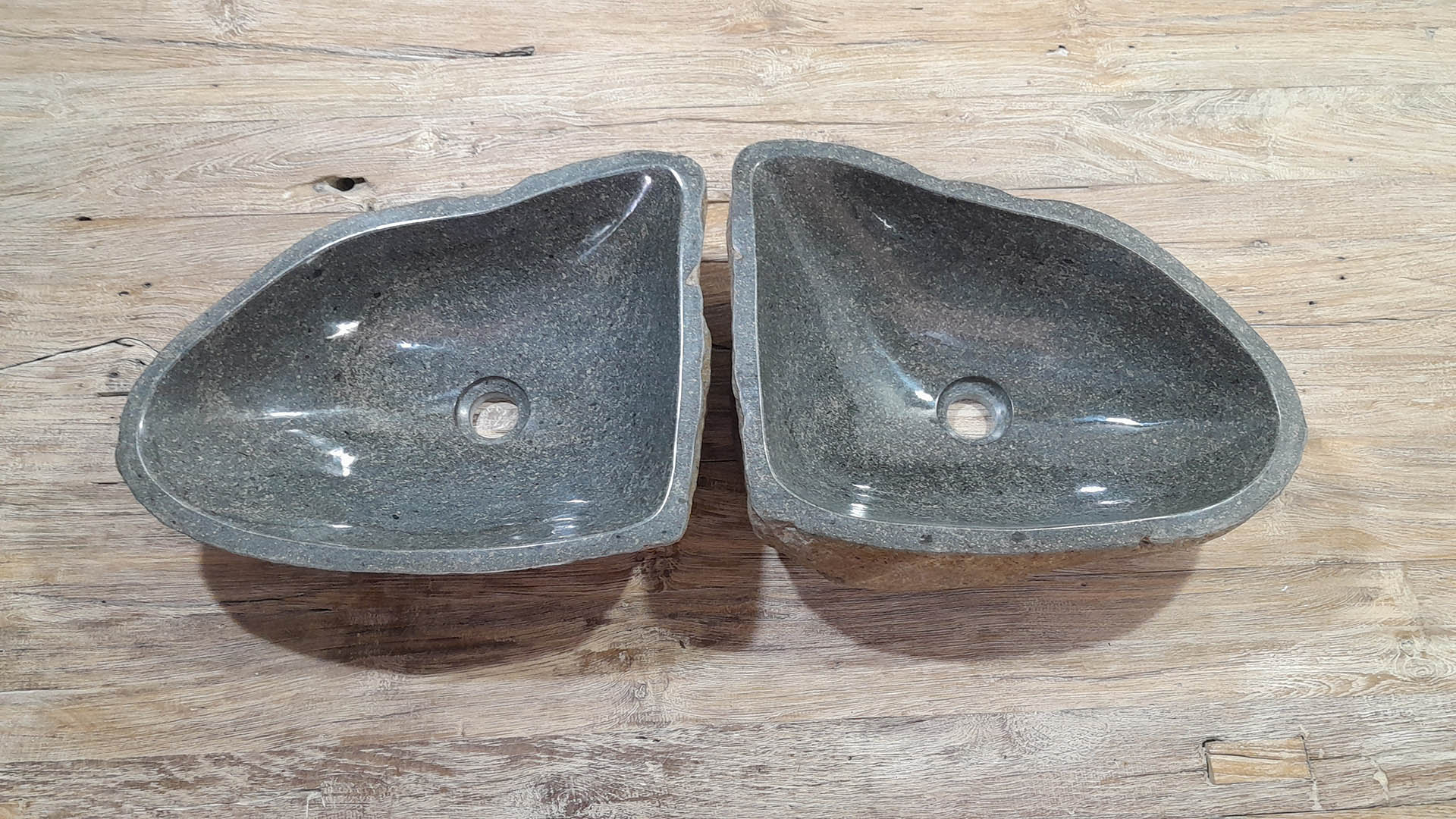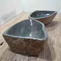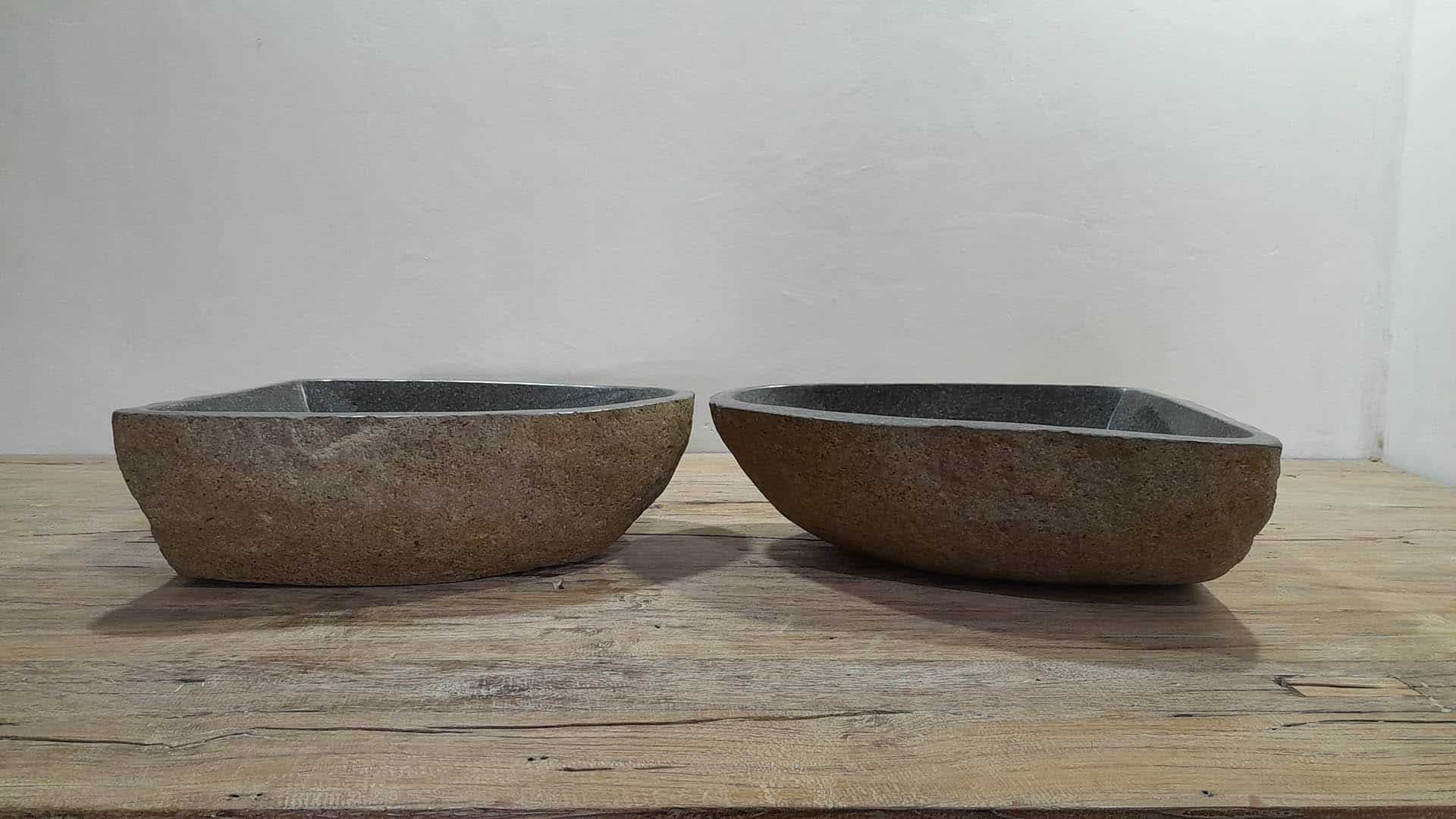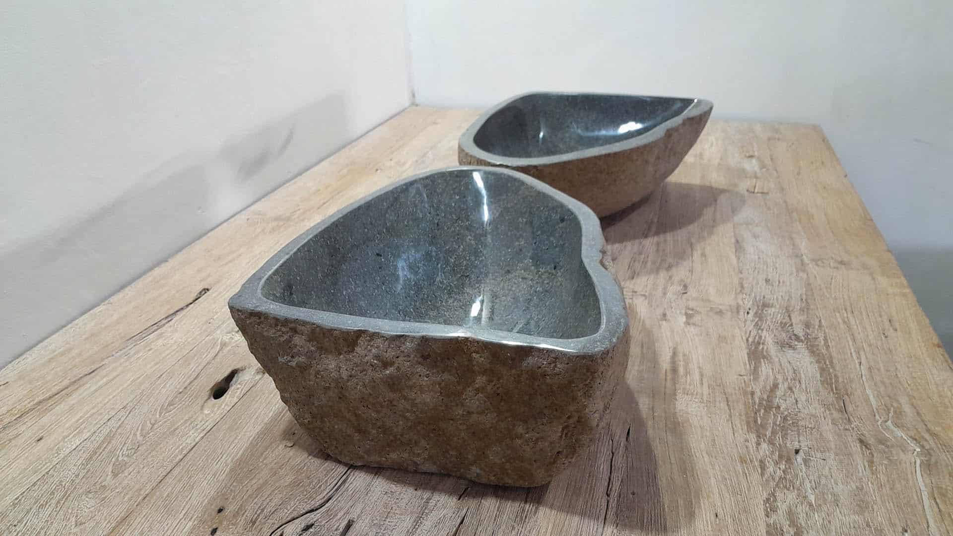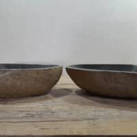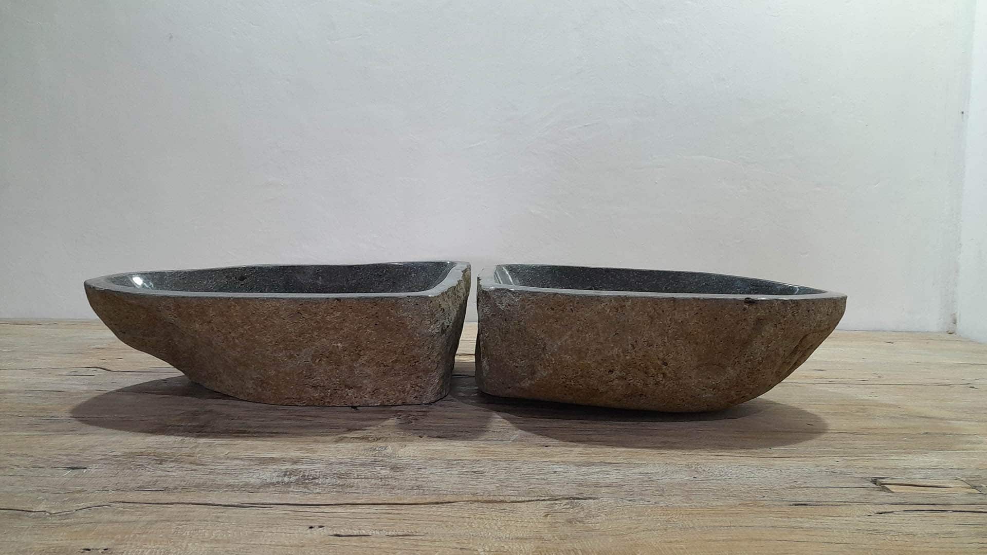 - Zwei handgefertigte Becken aus einem Flussstein