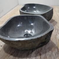 Home / Sortiment / Steinwaschbecken, Aufsatzwaschbecken und Schalen / Flussstein-Waschbecken / Flussstein Waschbecken Set aus einem Stein /