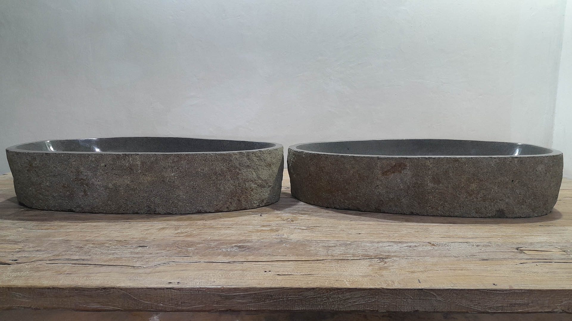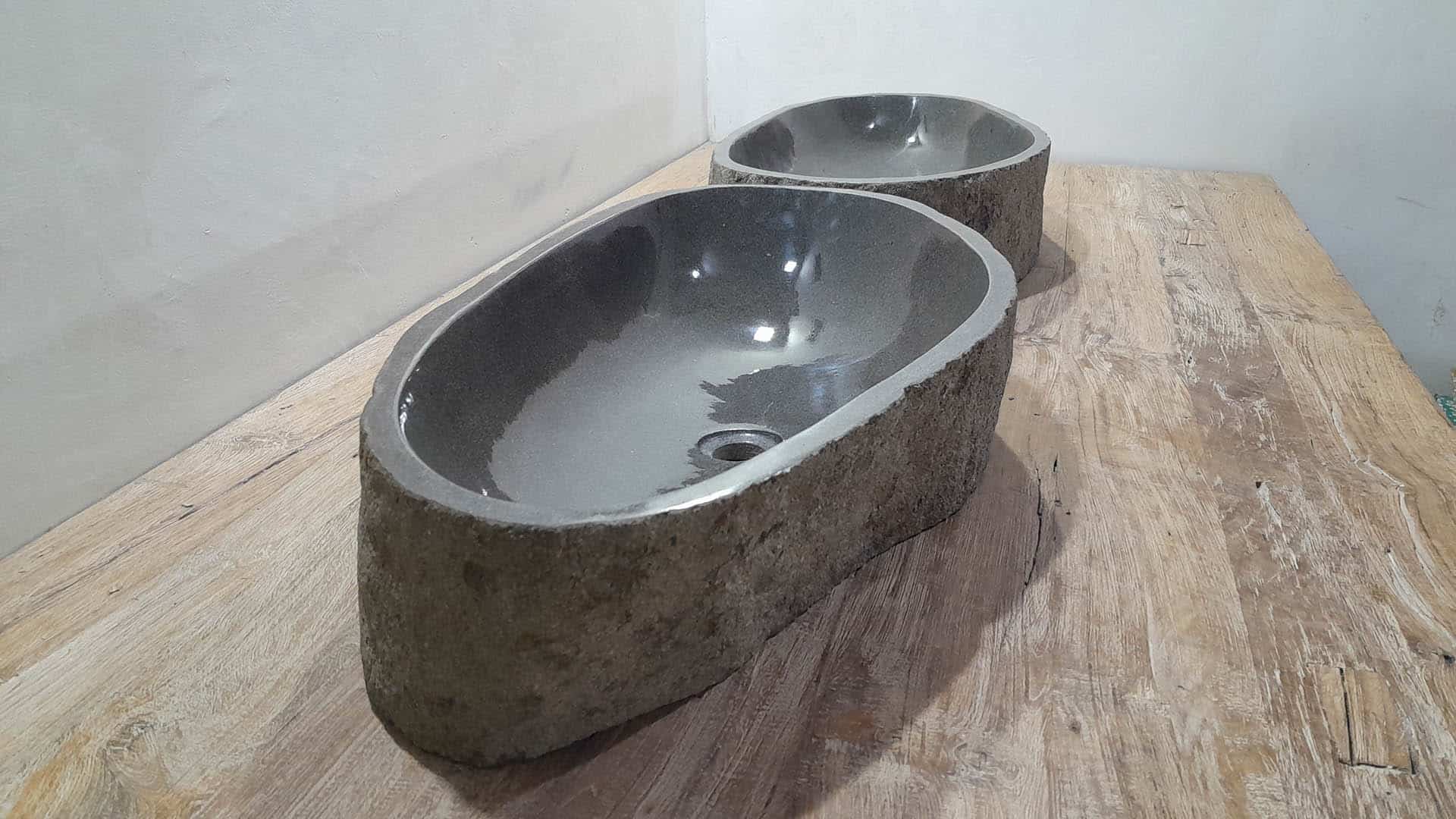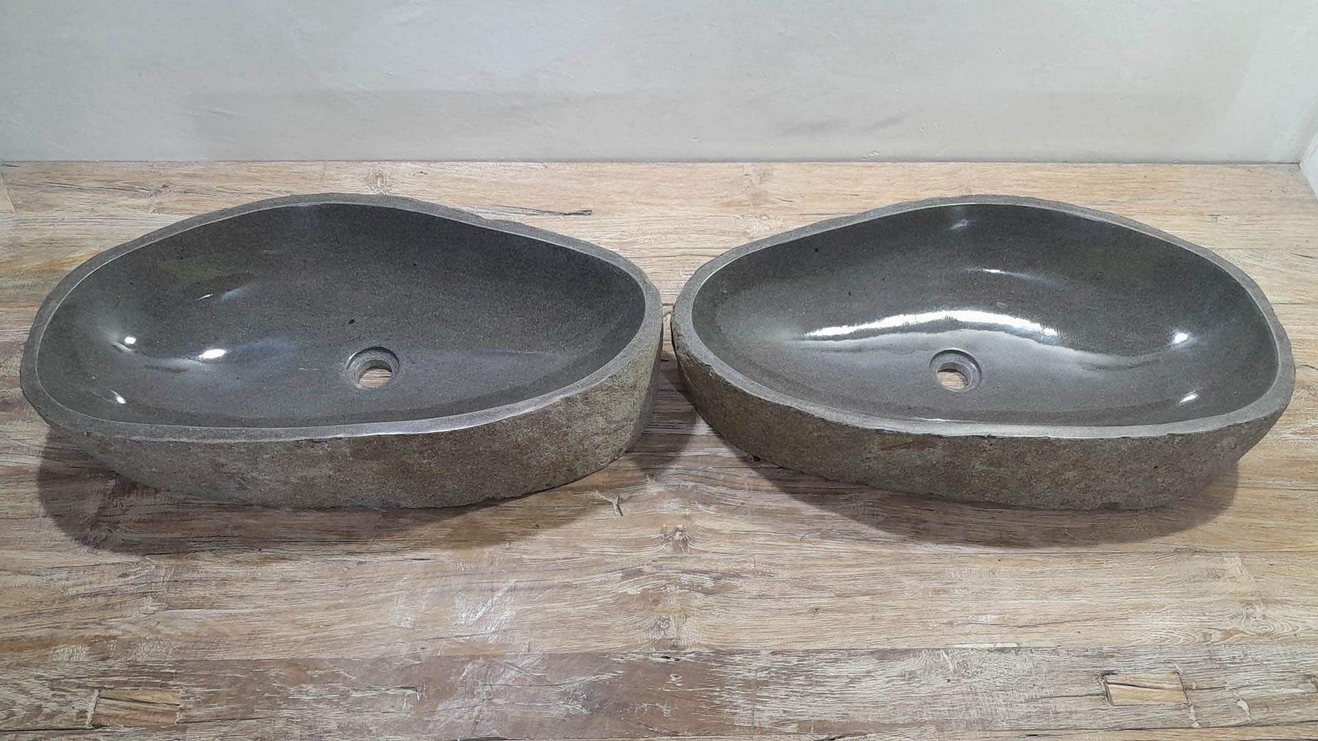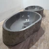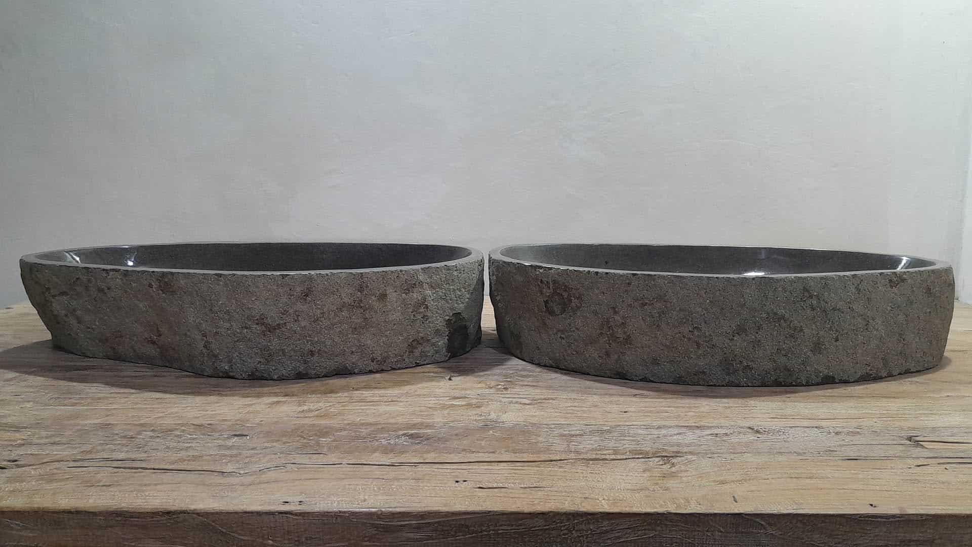 - Zwei handgefertigte Becken aus einem Flussstein