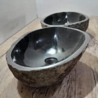 Home / Sortiment / Steinwaschbecken, Aufsatzwaschbecken und Schalen / Flussstein-Waschbecken / Flussstein Waschbecken Set aus einem Stein /