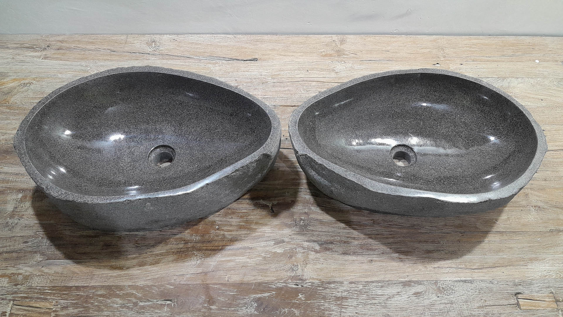 Home / Sortiment / Steinwaschbecken, Aufsatzwaschbecken und Schalen / Flussstein-Waschbecken / Flussstein Waschbecken Set aus einem Stein /