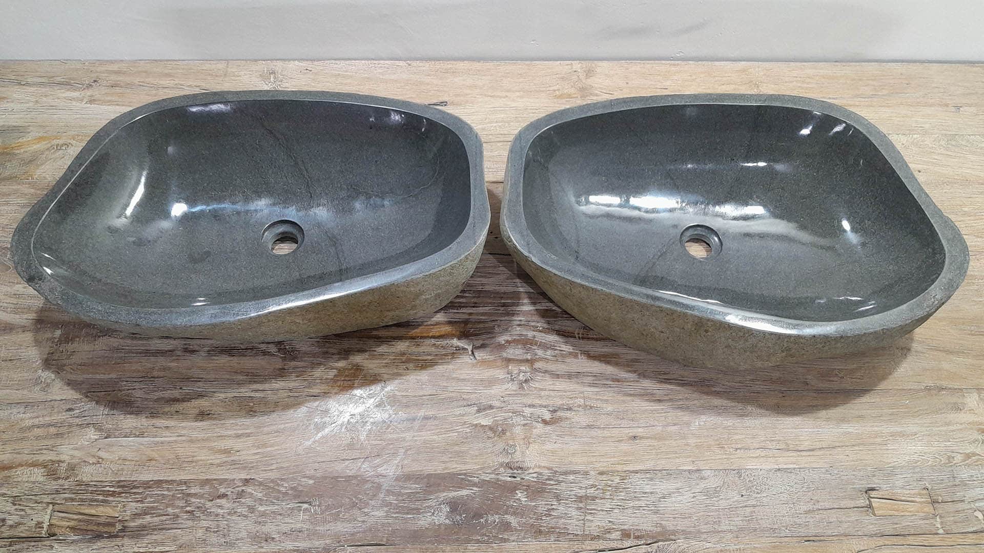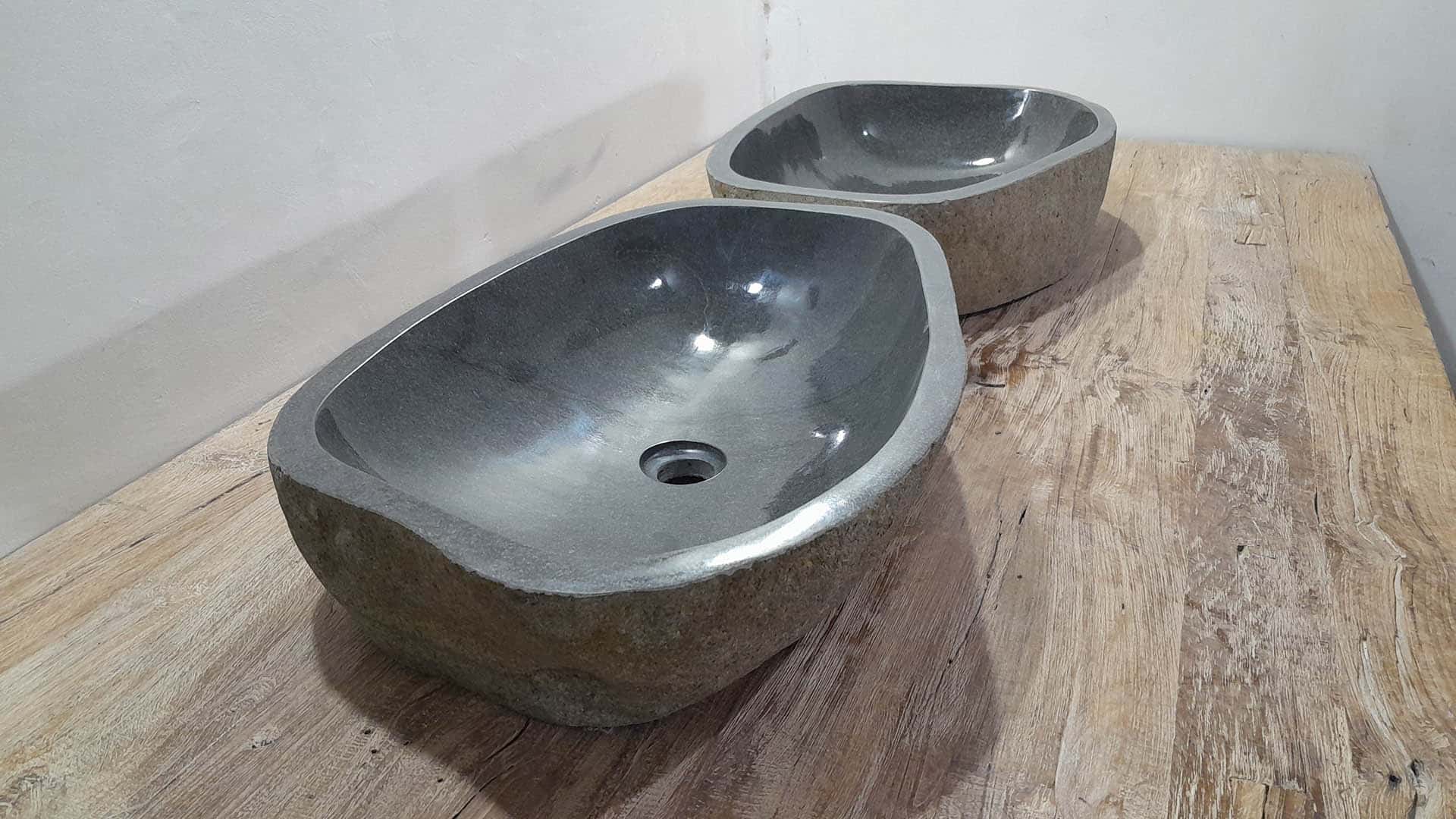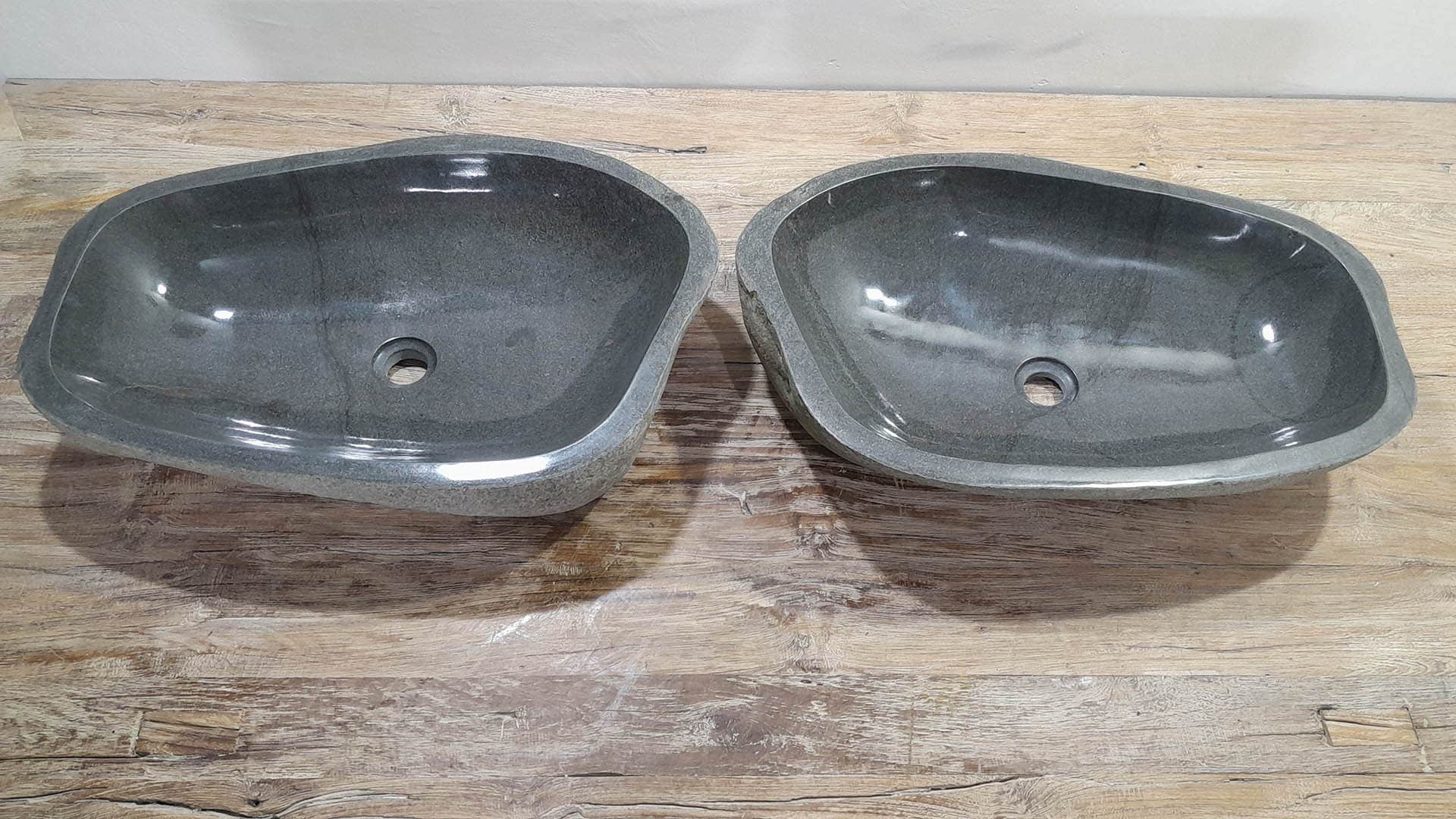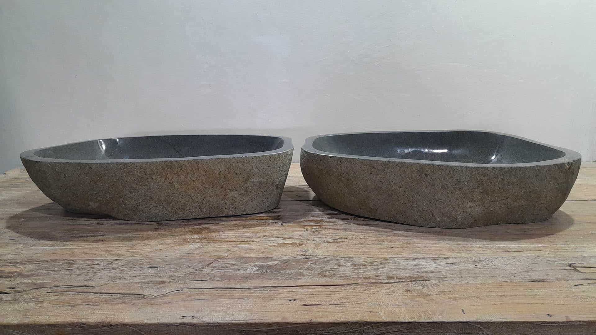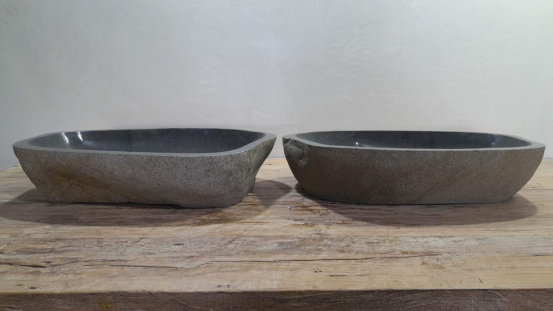 - Zwei handgefertigte Becken aus einem Flussstein