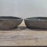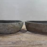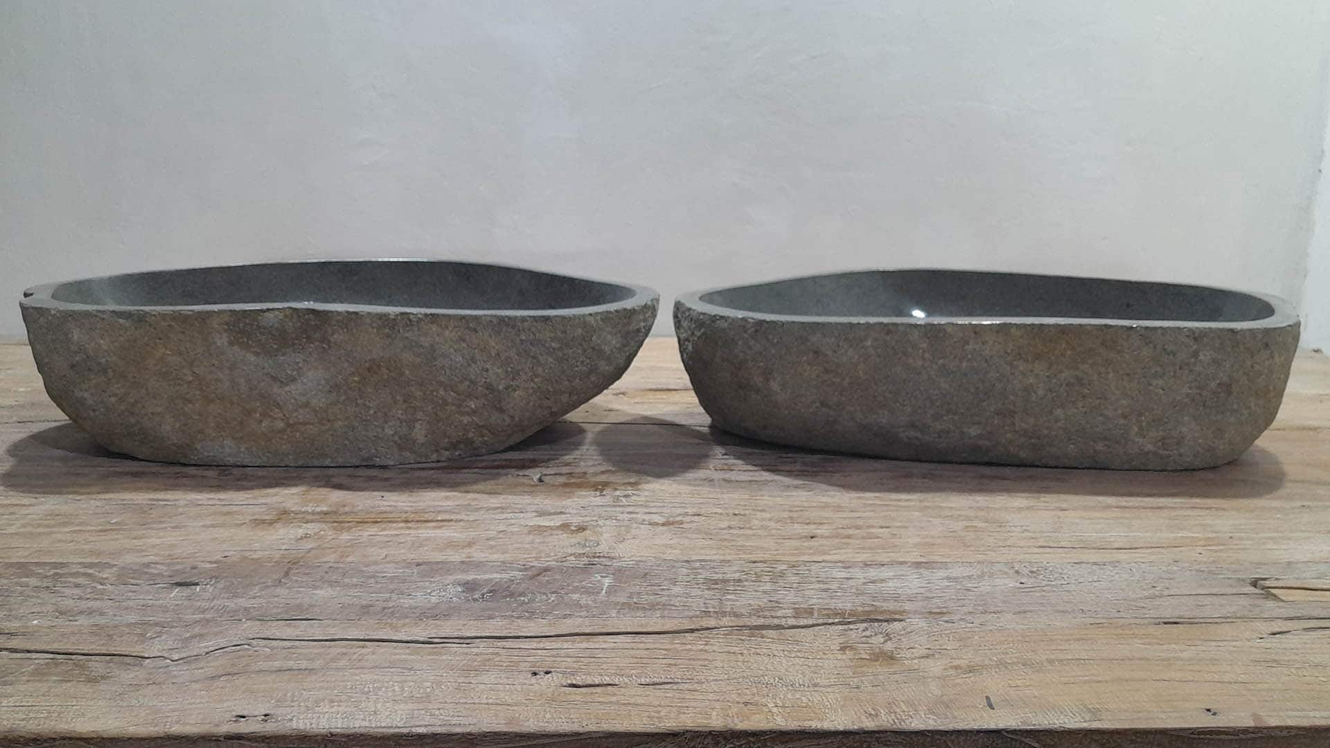 - Zwei handgefertigte Becken aus einem Flussstein