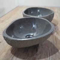 Home / Sortiment / Steinwaschbecken, Aufsatzwaschbecken und Schalen / Flussstein-Waschbecken / Flussstein Waschbecken Set aus einem Stein /