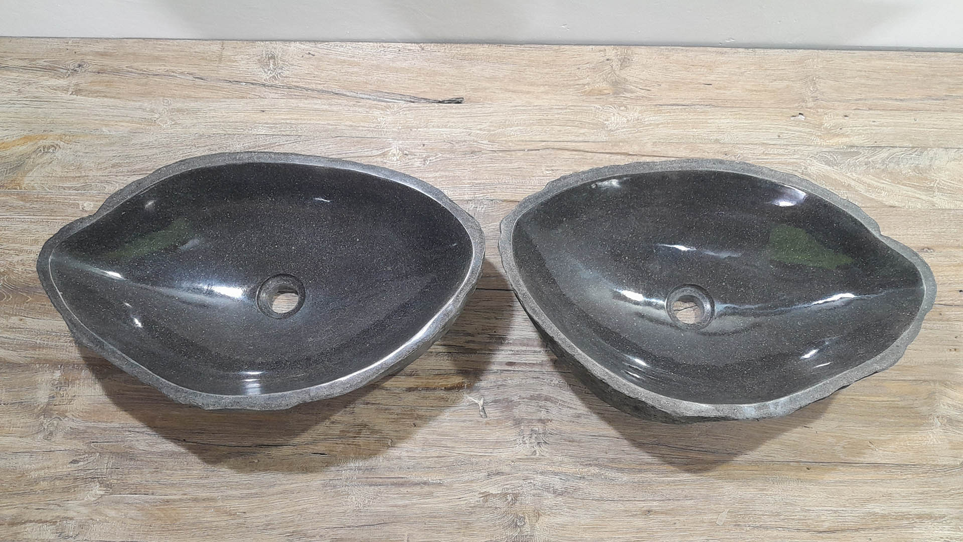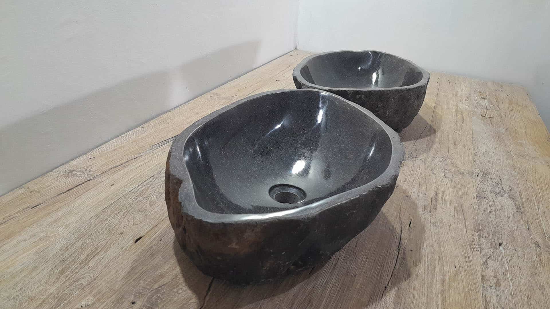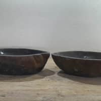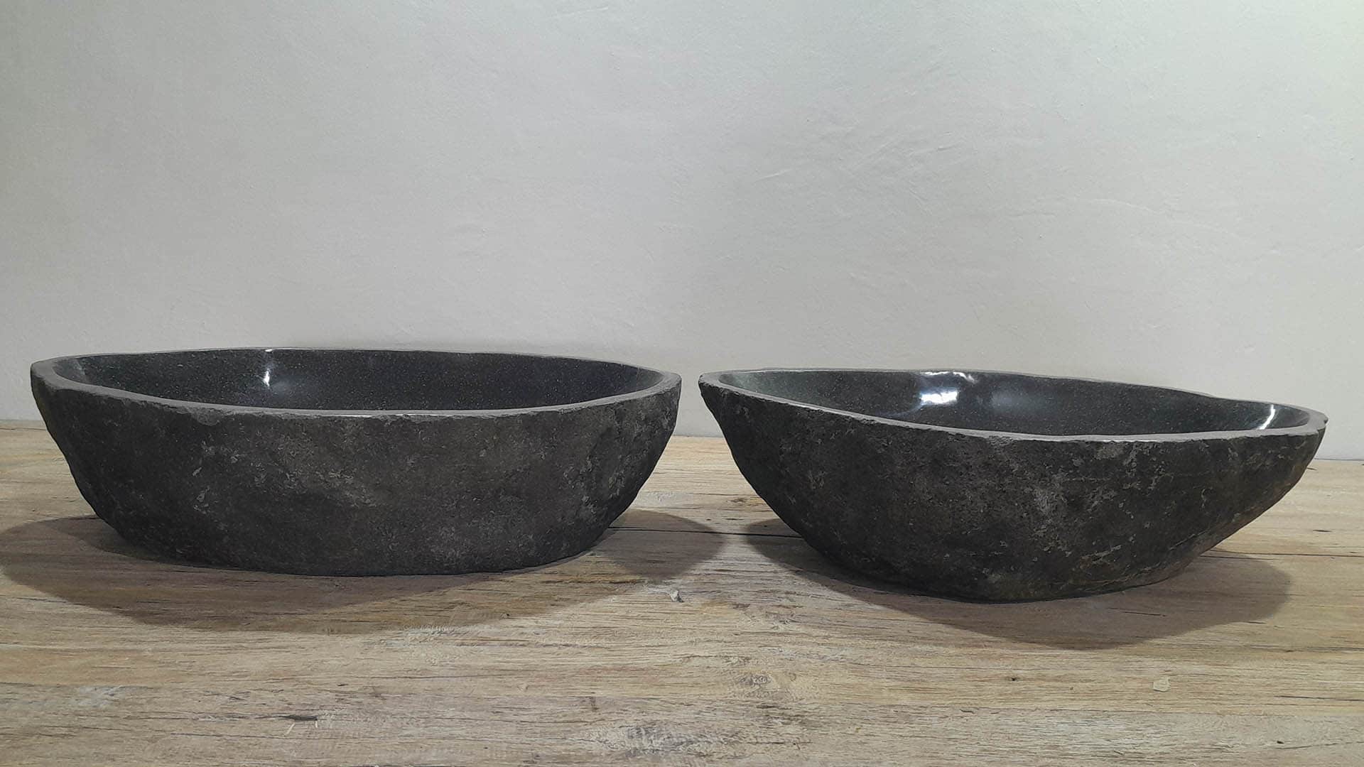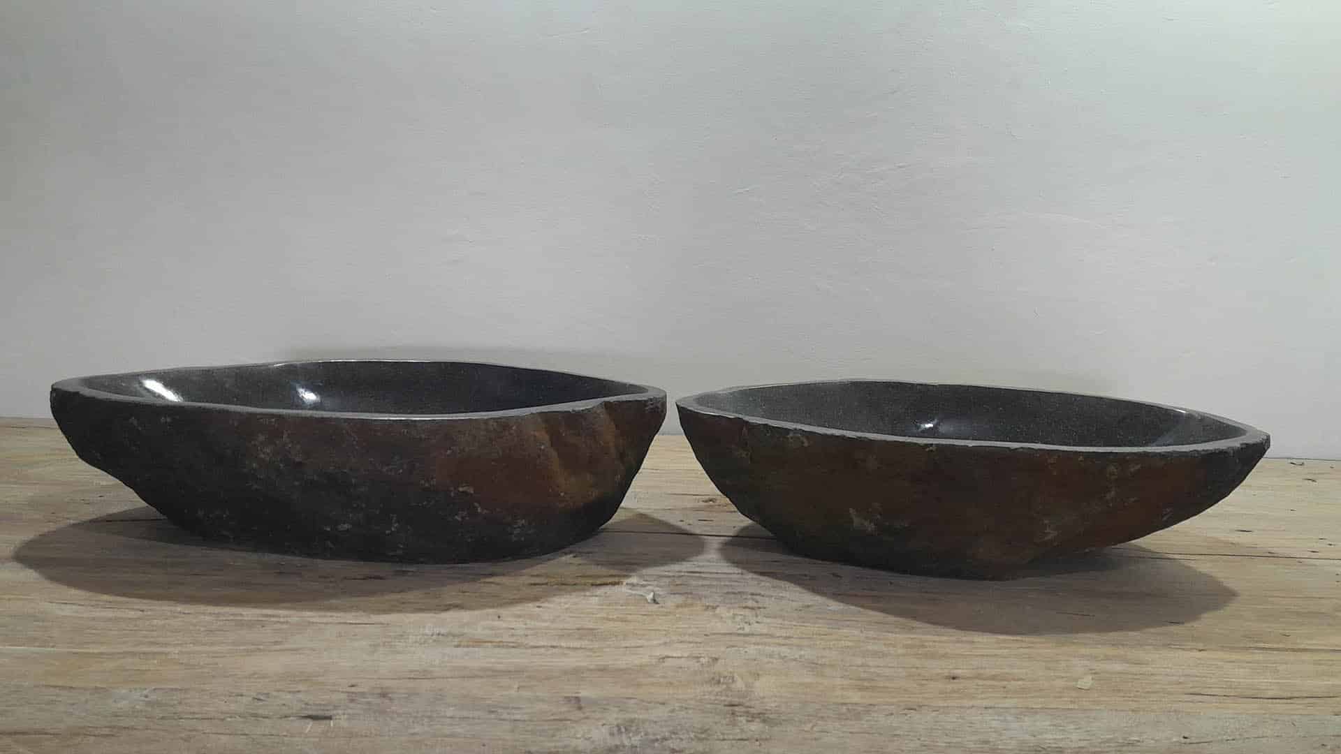 - Zwei handgefertigte Becken aus einem Flussstein