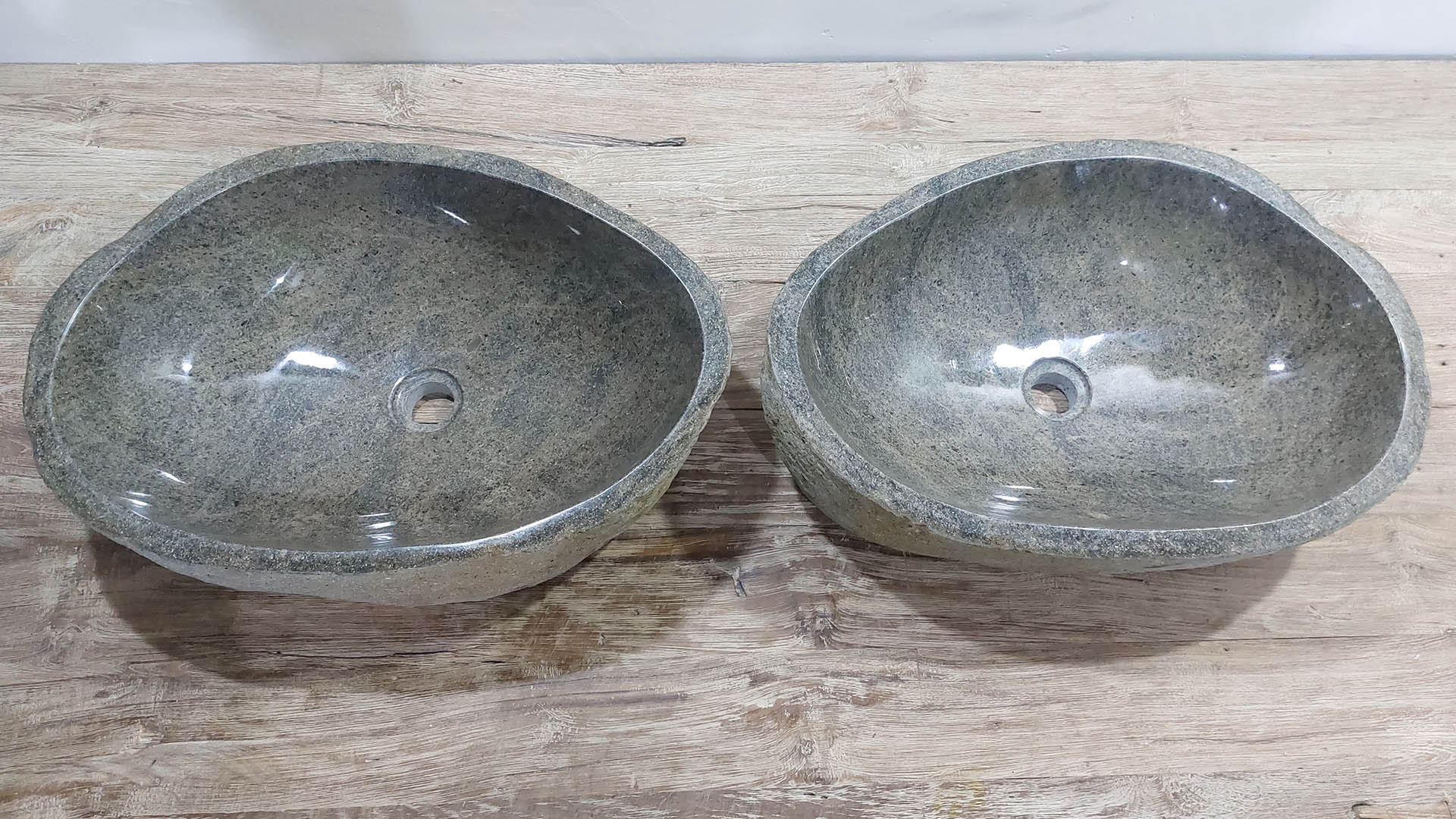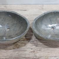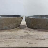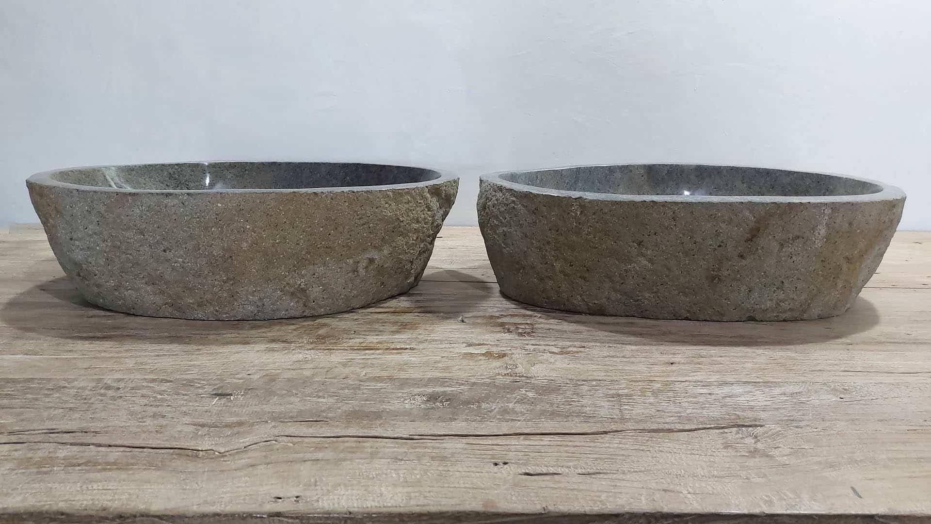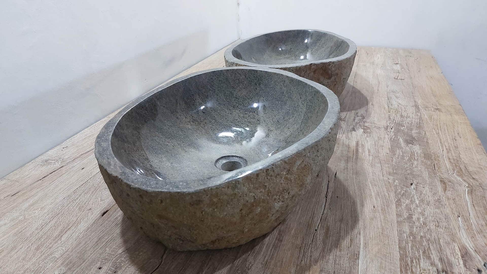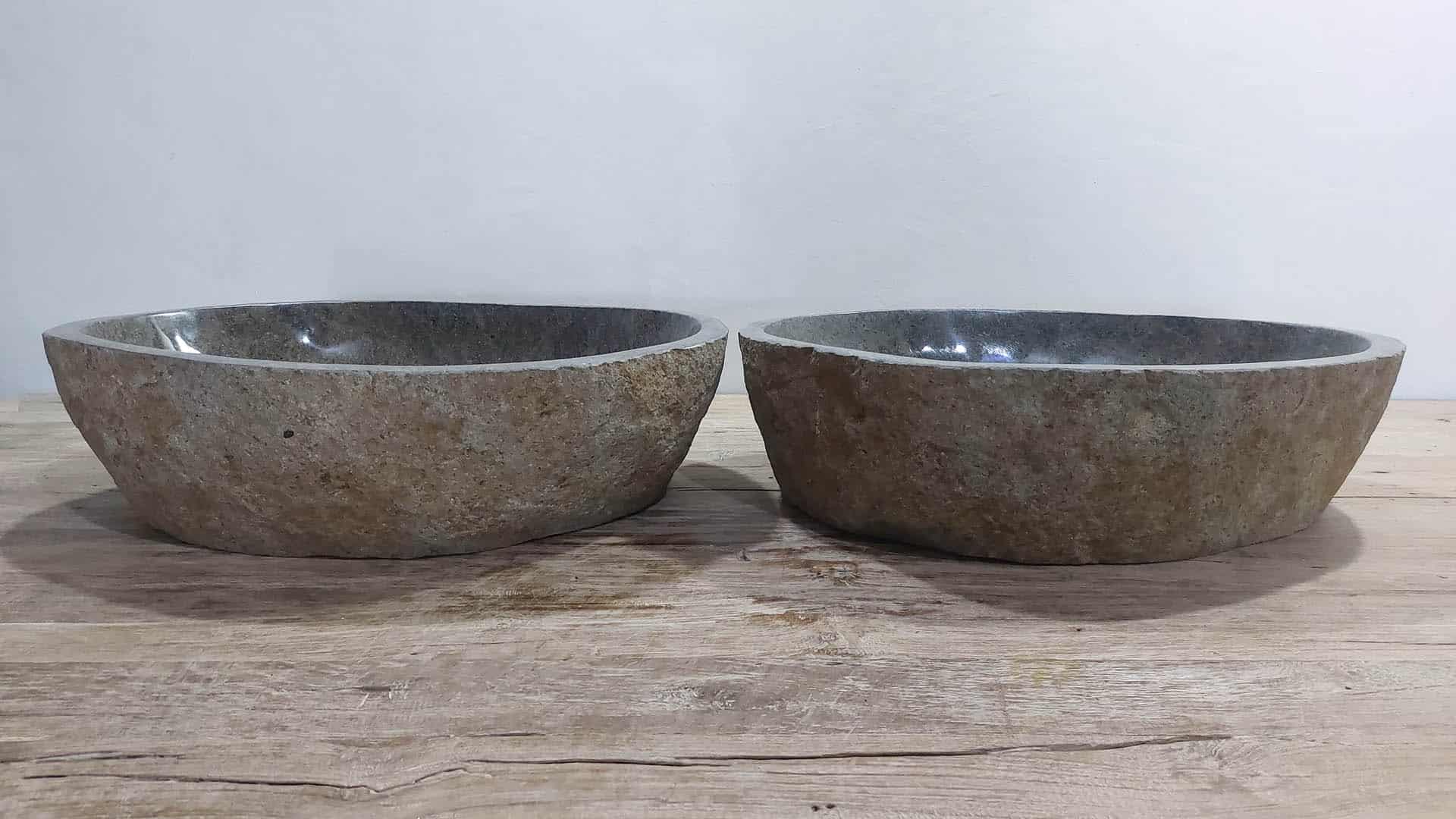 - Zwei handgefertigte Becken aus einem Flussstein