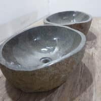 Home / Sortiment / Steinwaschbecken, Aufsatzwaschbecken und Schalen / Flussstein-Waschbecken / Flussstein Waschbecken Set aus einem Stein /