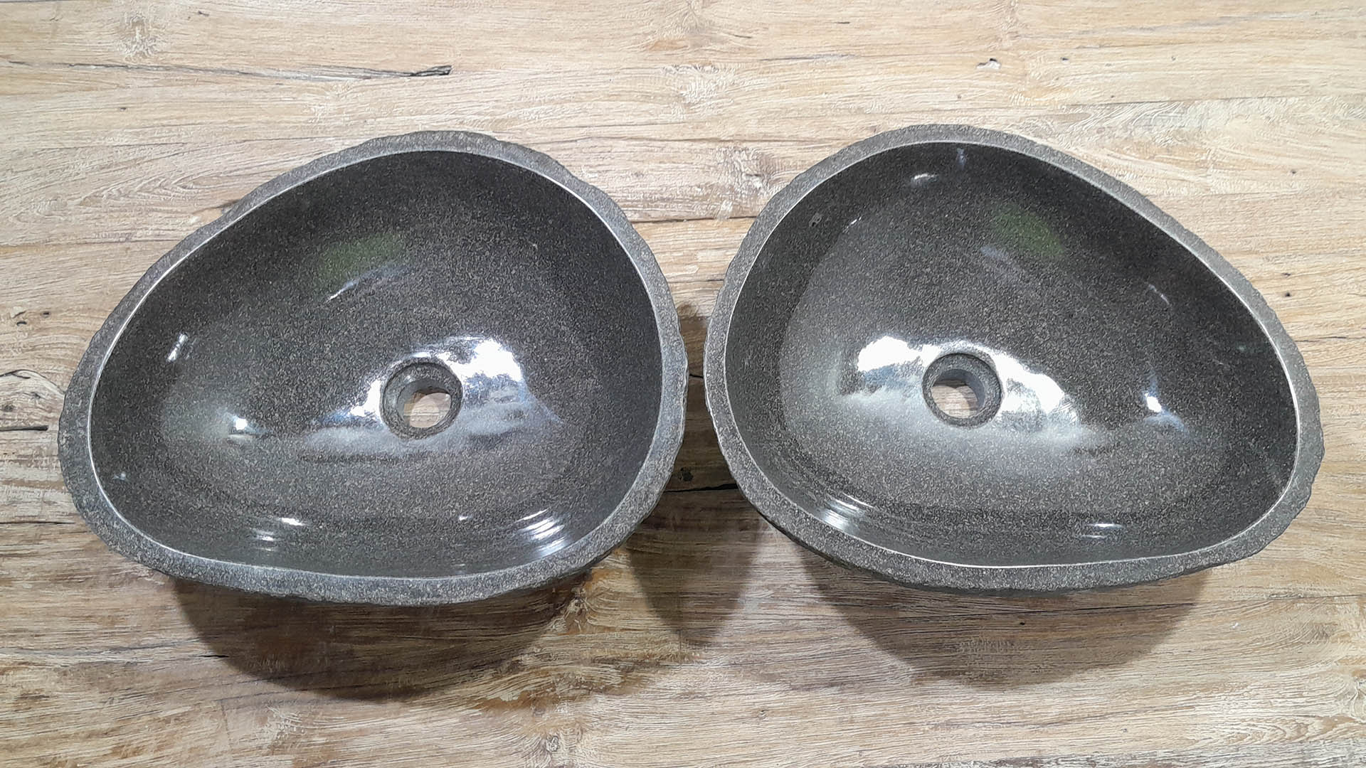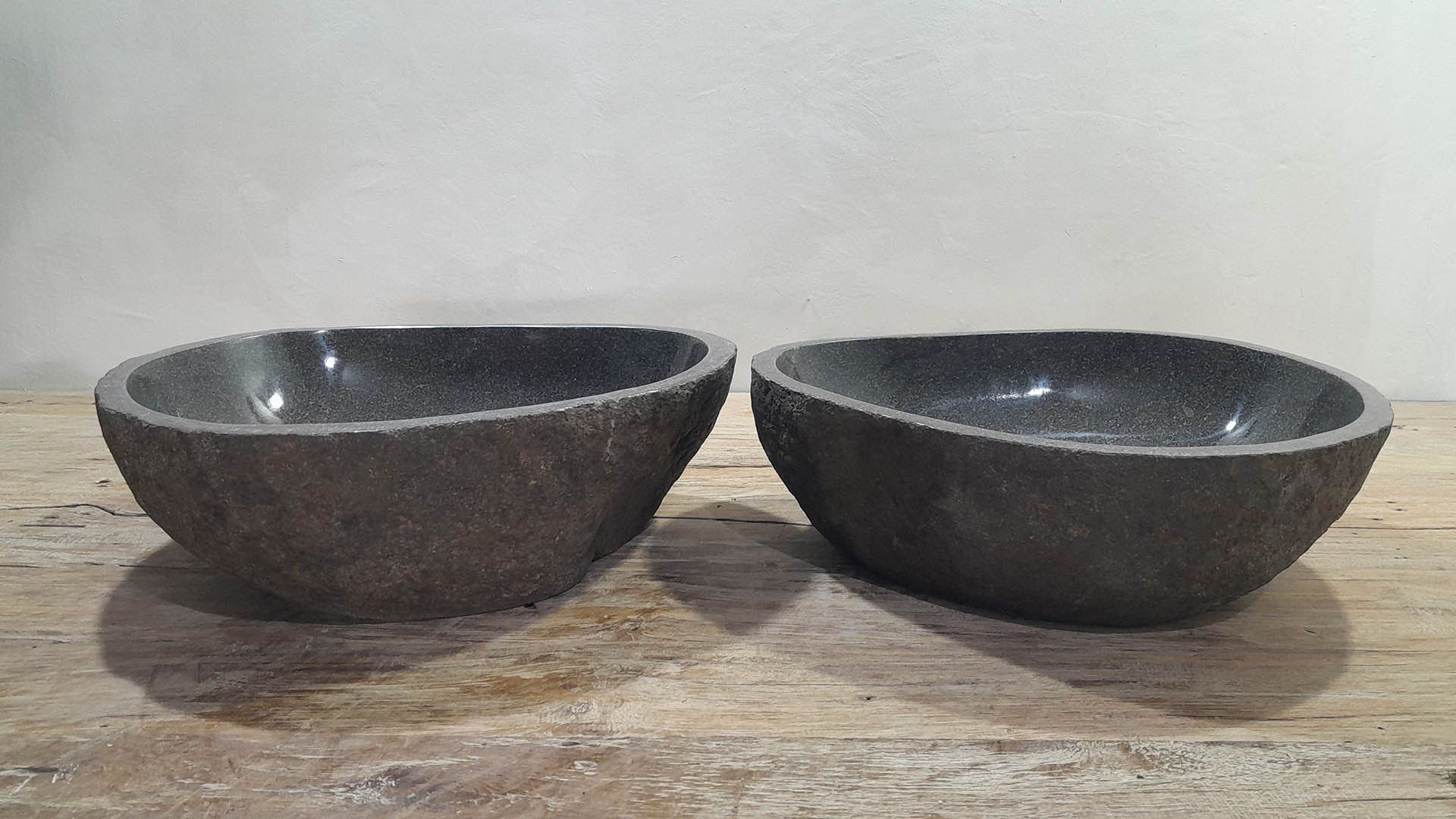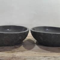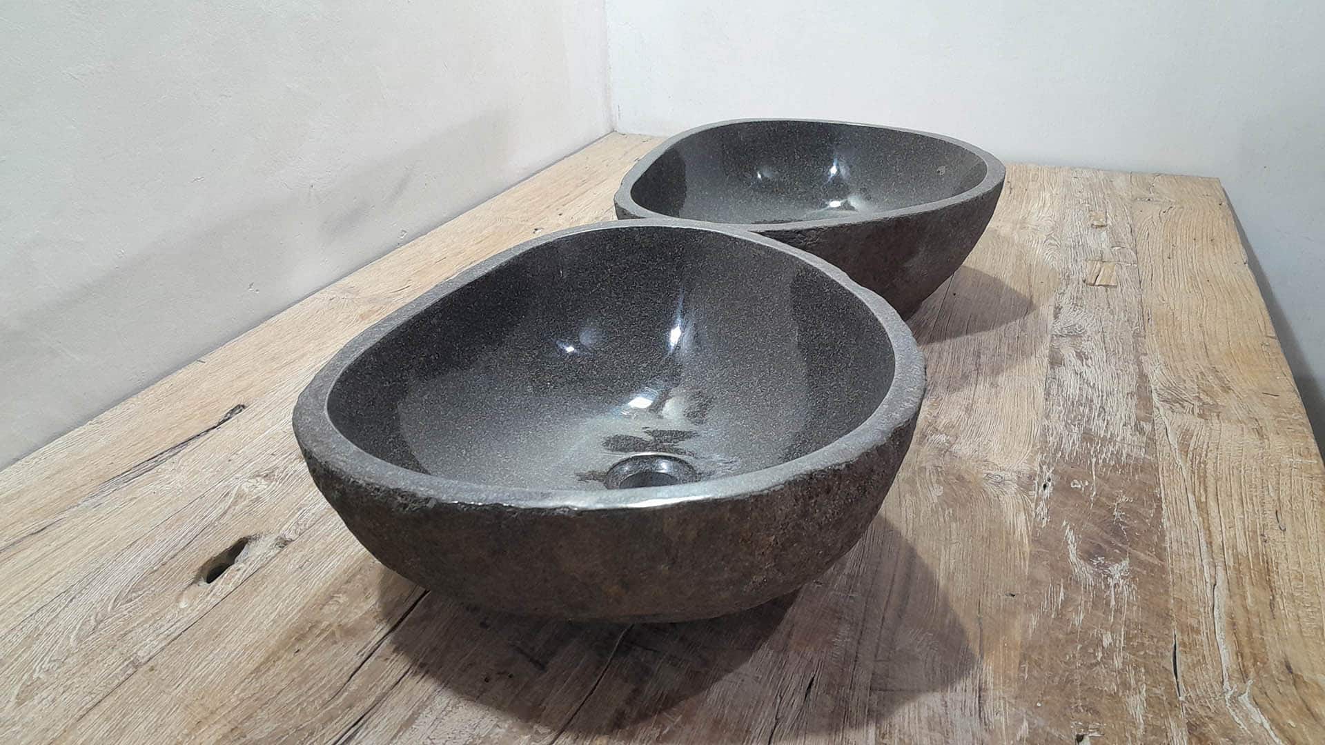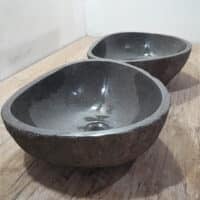 • Zwei handgefertigte Becken aus einem Flussstein