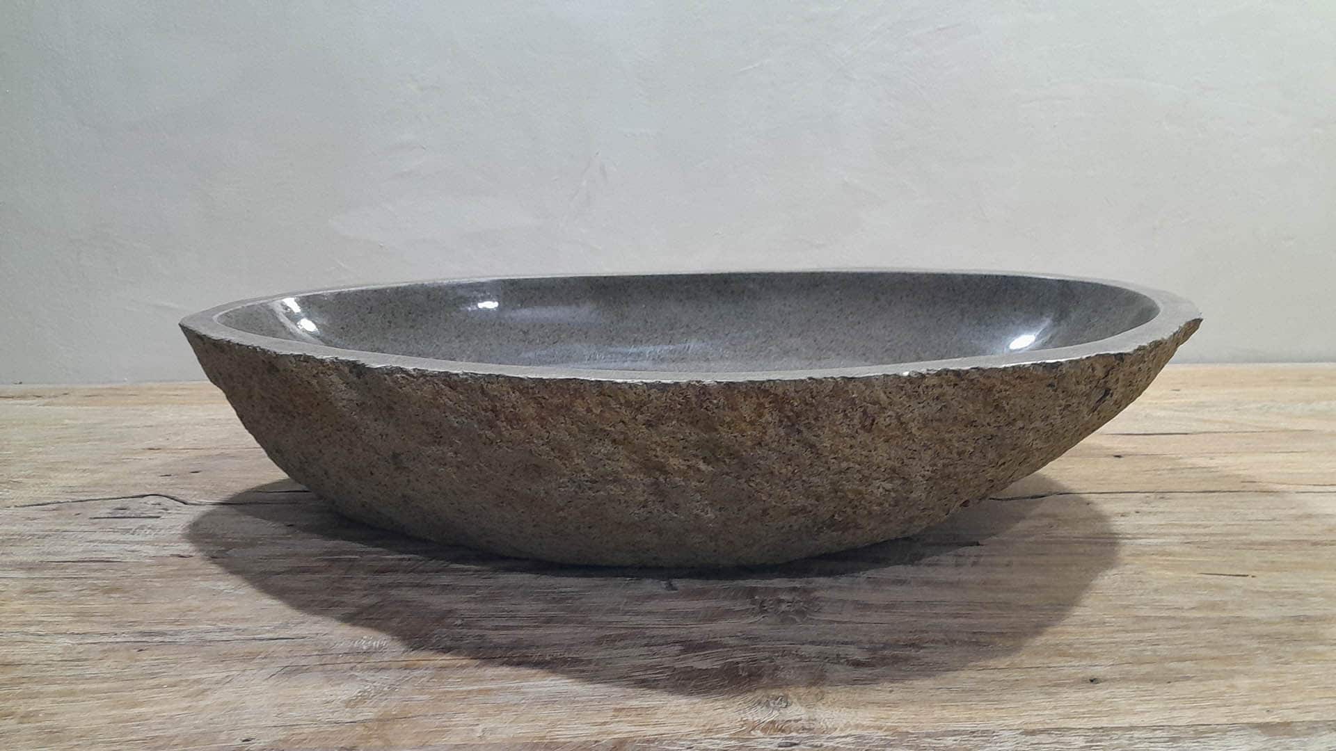 Home / Sortiment / Steinwaschbecken, Aufsatzwaschbecken und Schalen / Flussstein-Waschbecken / Großes Flussstein Waschbecken 70 bis 120 cm /