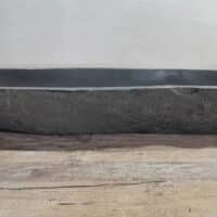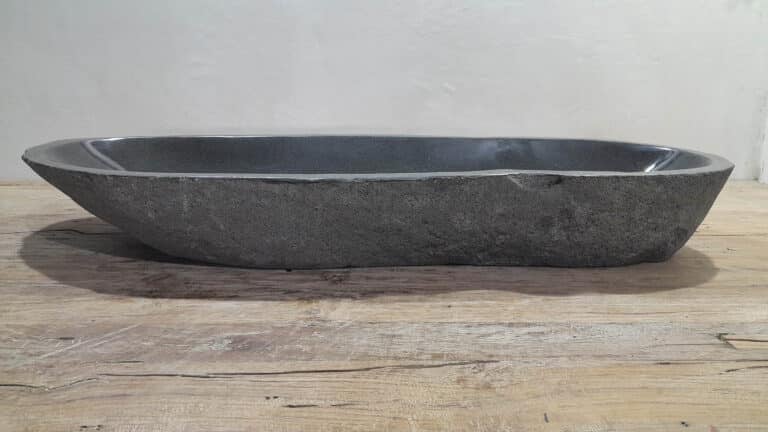 Diese große Naturstein Waschschale aus Flussstein ist ideal für geräumige Badmöbel, sowohl für große Einzel- als auch Doppelwaschtische. Die Innenseite der Flussstein Schale wird glatt poliert für eine schnelle Wasserableitung und einfache Reinigung, während die Außenseite roh und unbehandelt bleibt, wodurch die Schale ihren robusten und natürlichen Charakter behält.