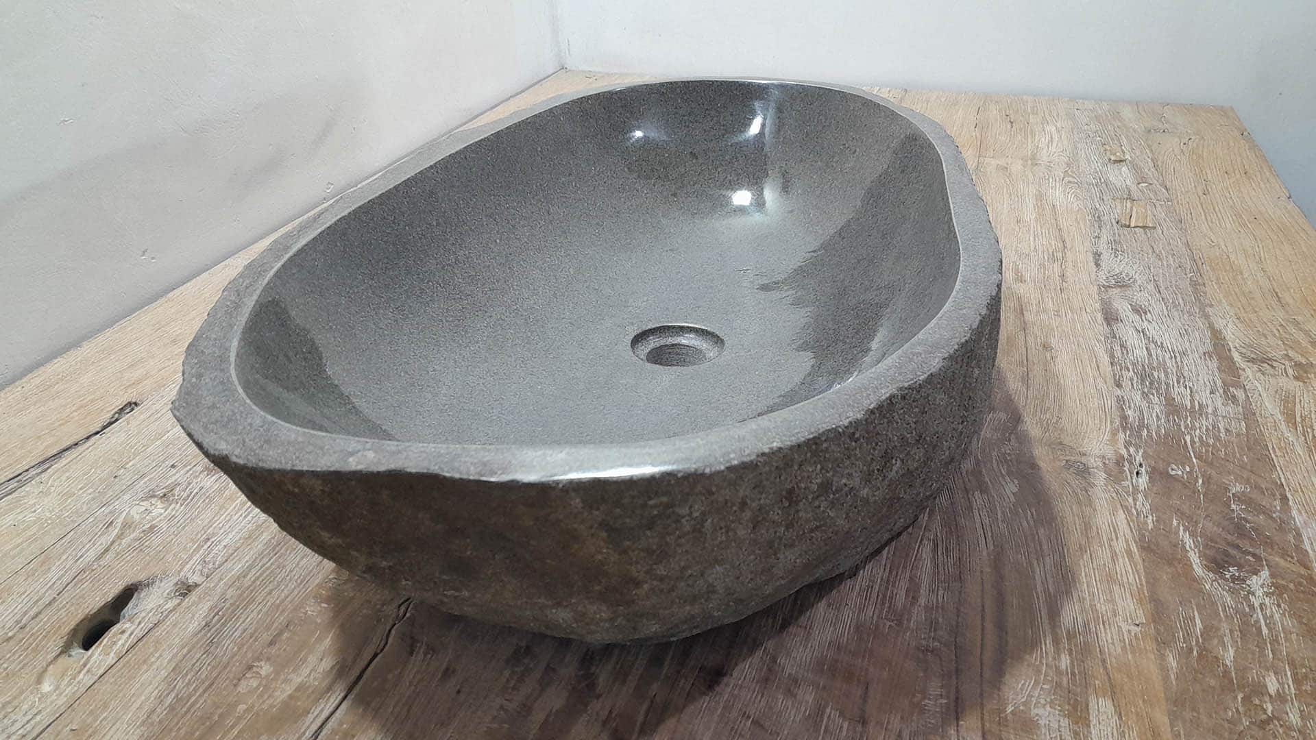 Home / Sortiment / Steinwaschbecken, Aufsatzwaschbecken und Schalen / Flussstein-Waschbecken / Großes Flussstein Waschbecken 70 bis 120 cm /