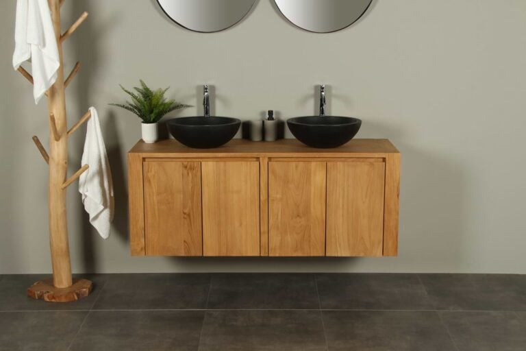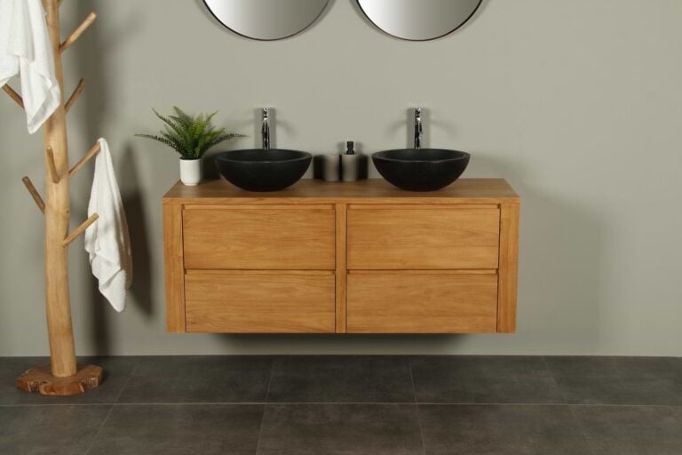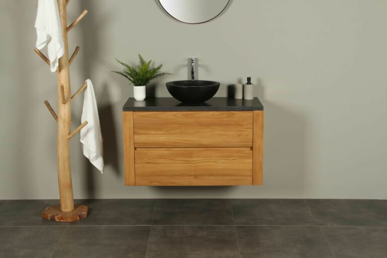 Wir entwerfen und entwickeln all unsere Teak-Badmöbel selbst um sicher zu gehen, dass beim Entwurf eines Teakholz-Badmöbles das „Arbeiten“ (Schrumpfen und Ausdehnen des Holzes) berücksichtigt wird. Dadurch werden unsere Produkte besonders robust, beständig und qualitativ hochwertig. So gehen wir sicher, dass Sie noch jahrelang von Ihren Badezimmermöbeln aus Teakholz genießen können.