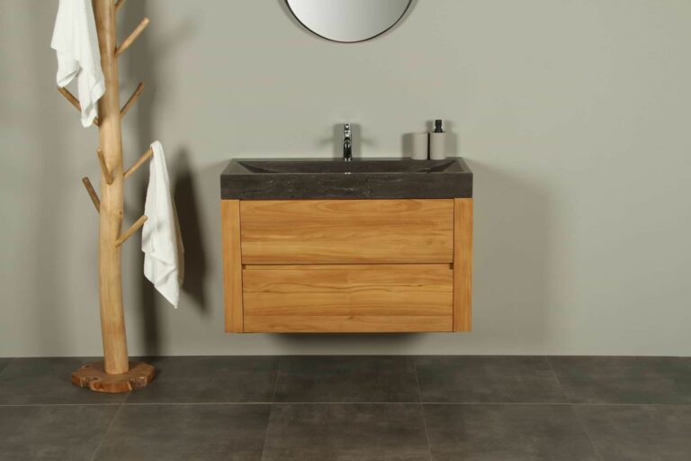 Badmöbel Teakholz Batur 80 cm mit Basalt Tischplatte