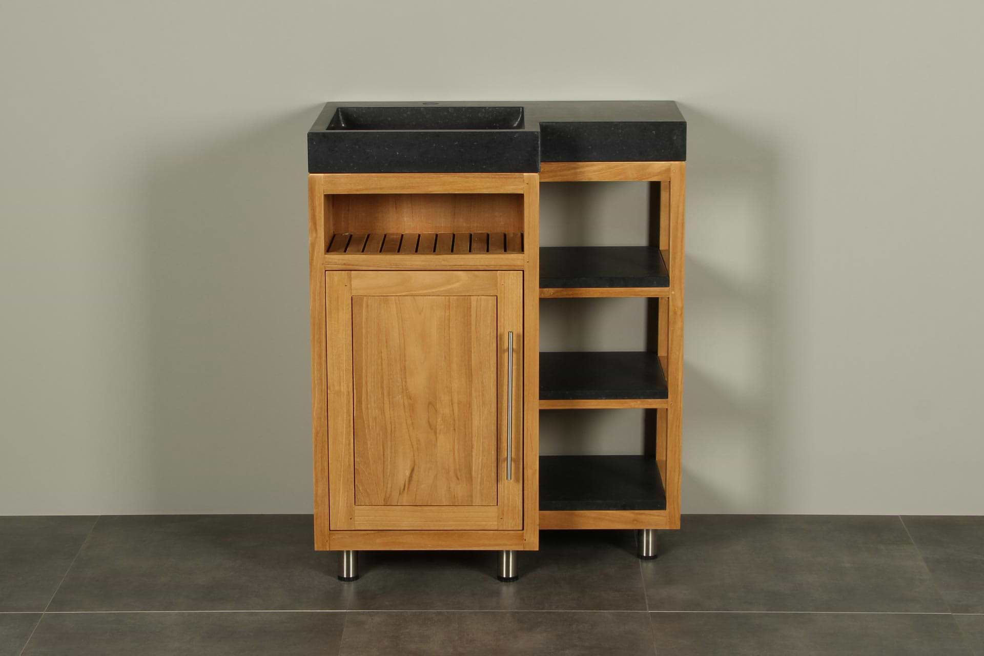 Kerinci Cabinet Teakholz Tür Links Basaltstein 75 cm
