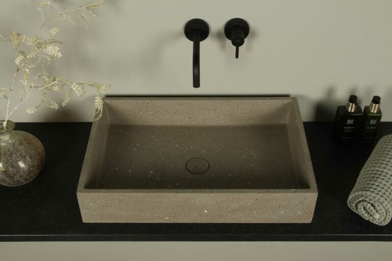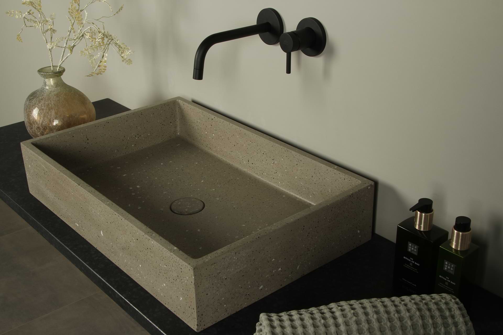Home / Sortiment / Steinwaschbecken, Aufsatzwaschbecken und Schalen / Terrazzo-Waschbecken /