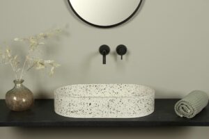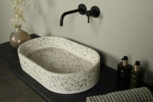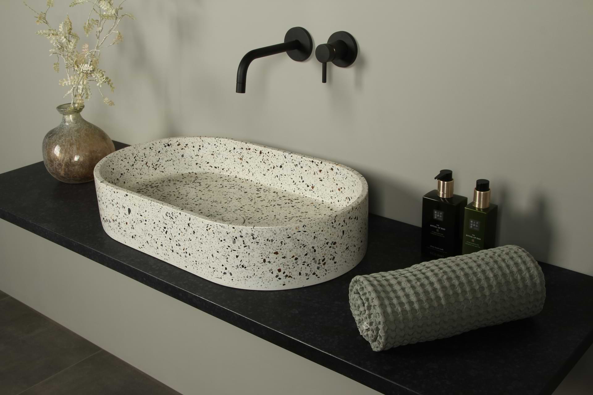 Home / Sortiment / Steinwaschbecken, Aufsatzwaschbecken und Schalen / Terrazzo-Waschbecken /